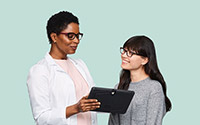 A Licensed Optician explaining the patient care process and how to use existing prescriptions.