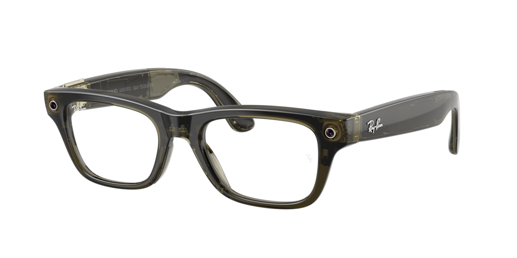 Ray-Ban Meta Blayzer Optics combine bold innovation with effortless style. The rectangular frames, crafted from durable nylon and propionate, showcase clean, linear design in a striking green finish. Transparent solid-color lenses add a fresh, contemporary edge. With injected temples and Ray-Ban's iconic design vision, these glasses offer a versatile option for low bridge fit while continuing the evolution of timeless eyewear.