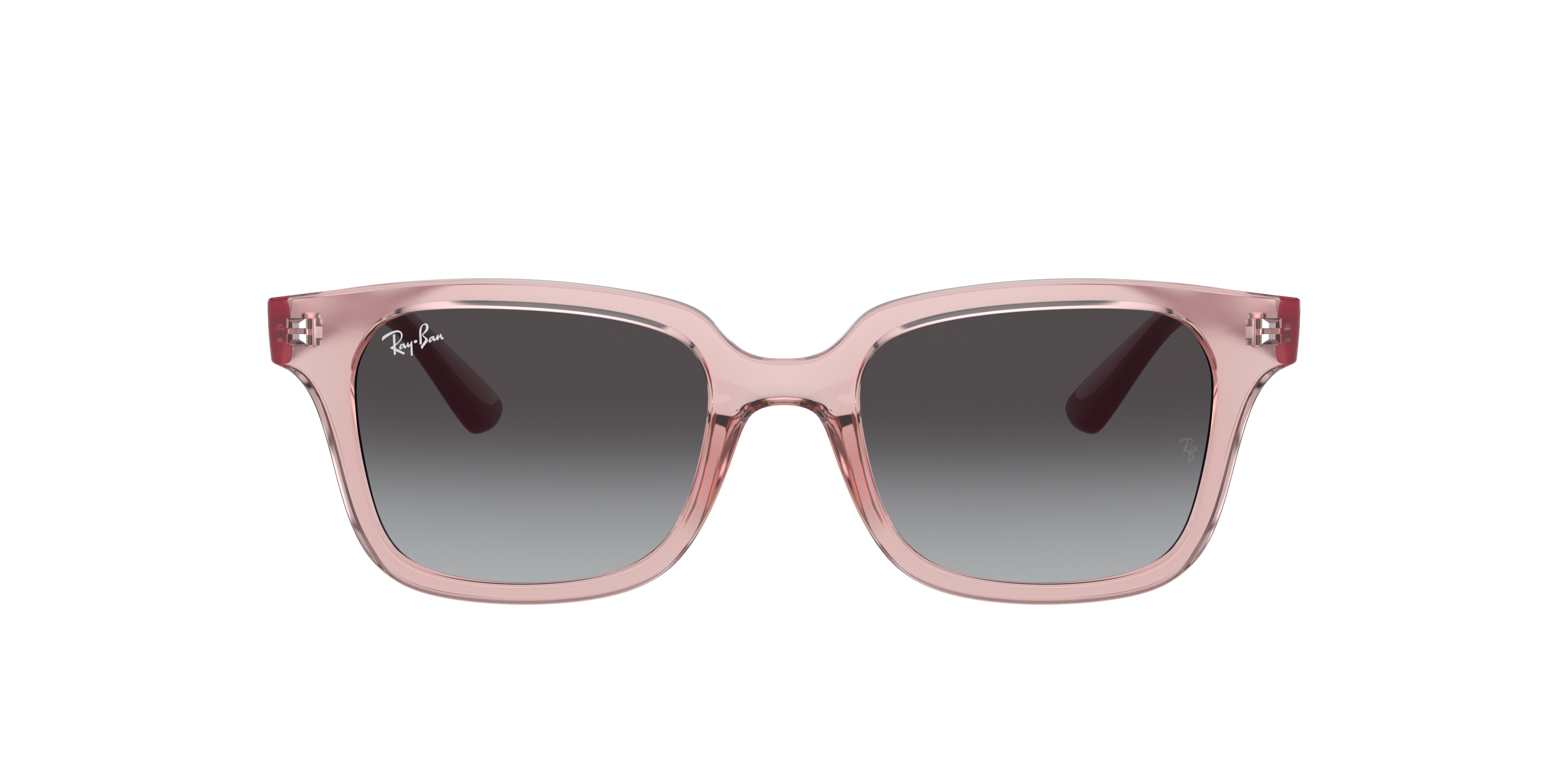 Elevate your child's style quotient with Ray-Ban RB9071S Kids sunglasses. The square shape and polished, transparent pink frame offer a modern and trendy look. The gradient grey lenses not only add a pop of color but also provide excellent protection from the sun. These shades are designed with children in mind, ensuring comfort and durability. Available with prescription lenses.