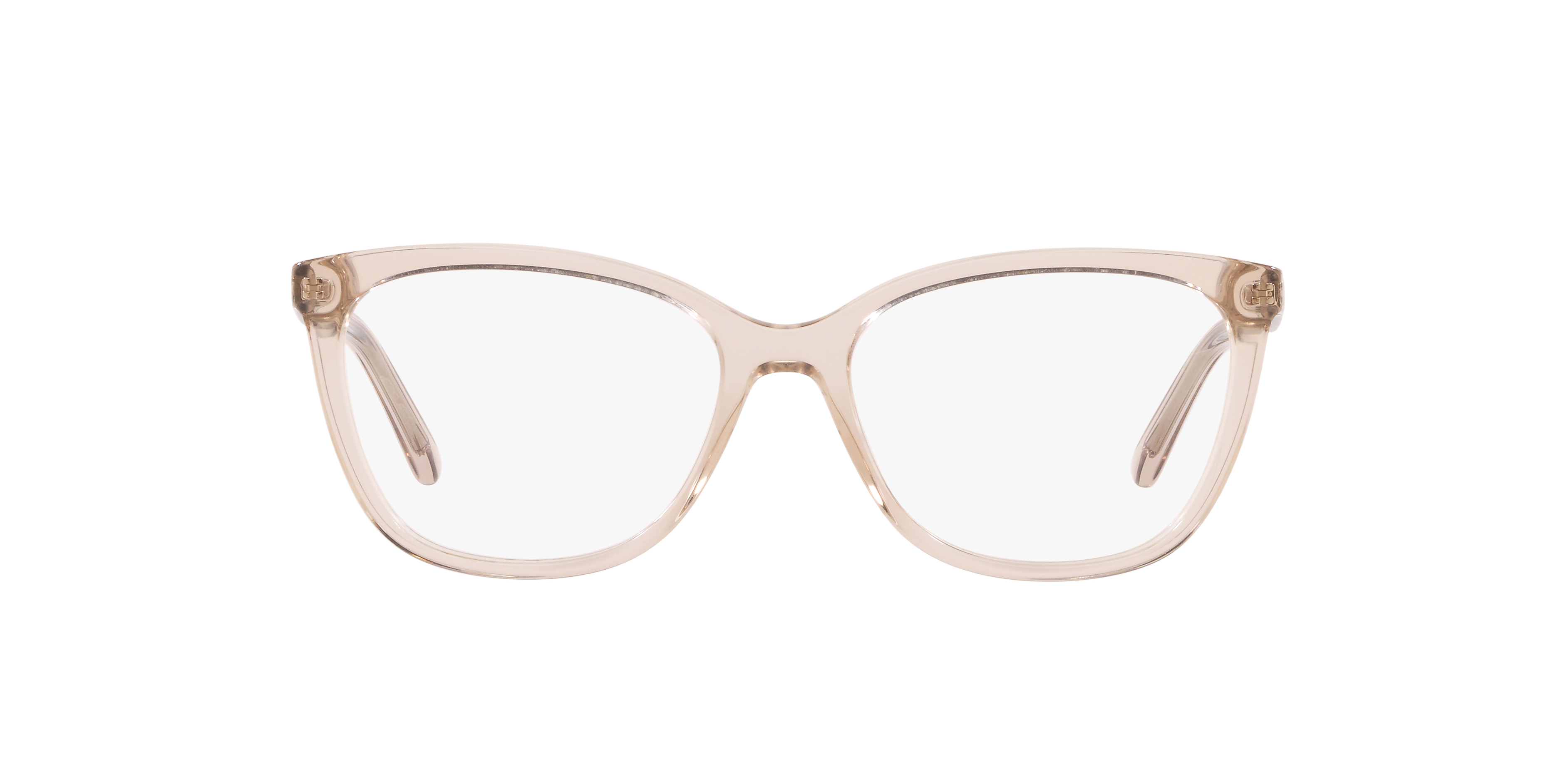 Elevate your look with these eyeglasses, designed exclusively for the fashion-forward. The butterfly shape adds a touch of elegance to any outfit, while the transparent beige color provides a neutral base that pairs well with any color palette. Crafted from high-quality acetate, these glasses are durable and lightweight. With their polished finish and unique design, they're sure to become a staple in your eyewear collection. Available with prescription lenses.