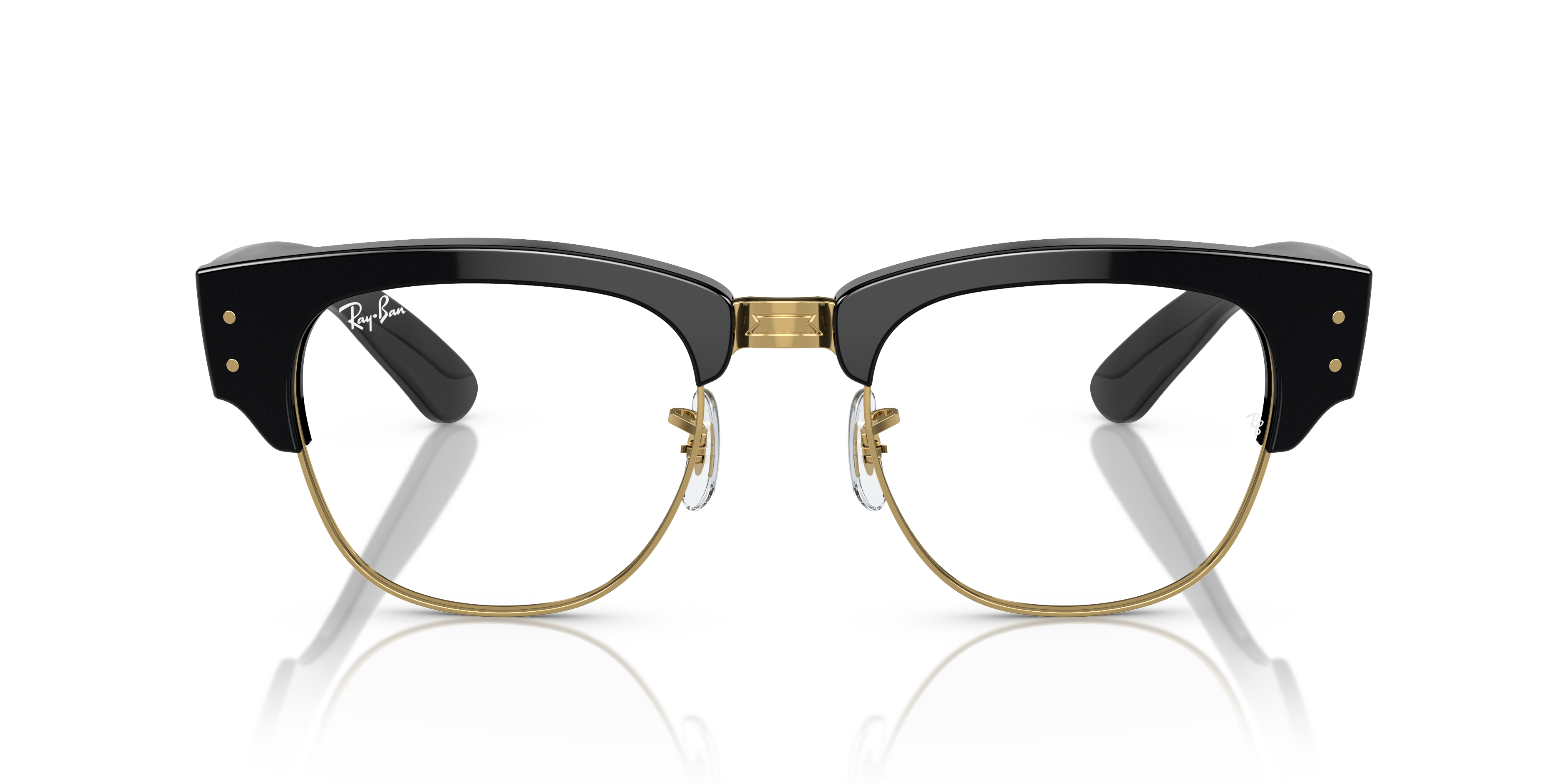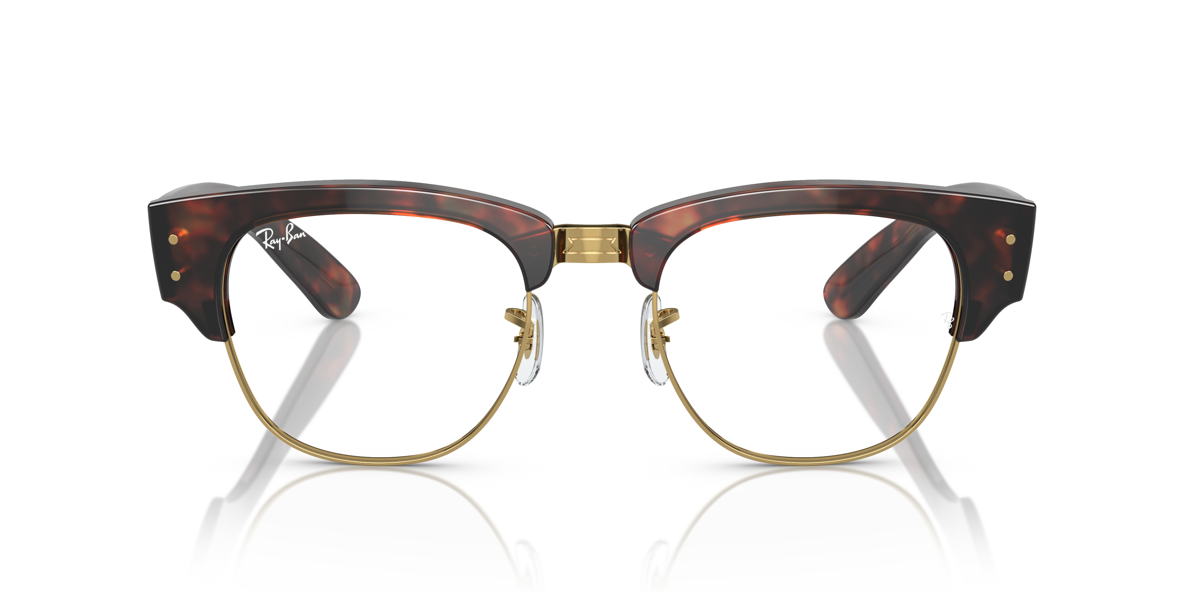 Elevate your style quotient with Ray-Ban Mega Clubmaster Optics. The square shape and polished tortoise on gold frame color give these eyeglasses a timeless appeal. The black and gold contrast adds a touch of sophistication to your look. These frames are not only stylish but also versatile, making them an ideal choice for everyday wear.