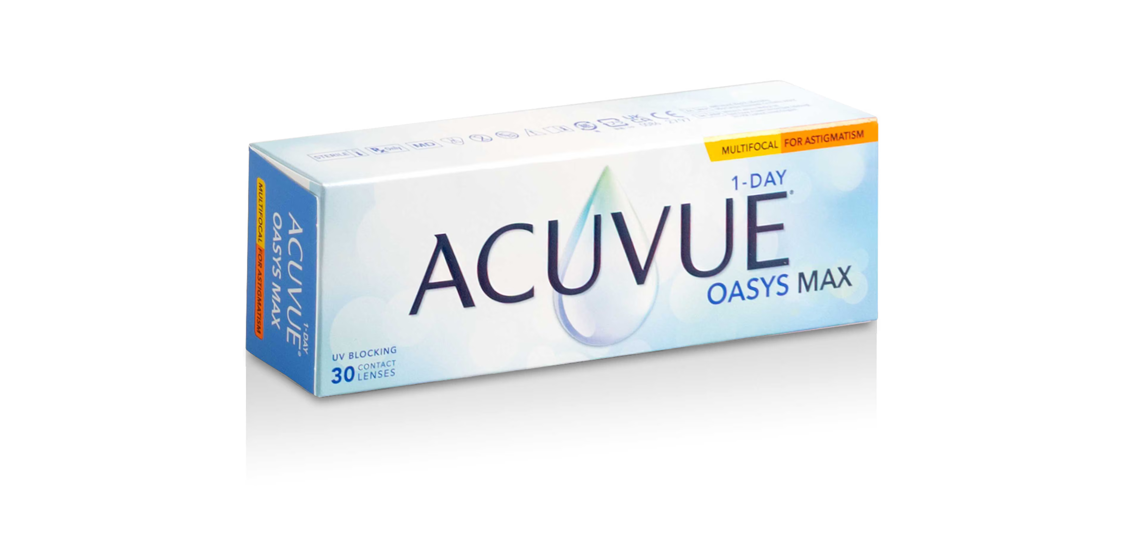 ACUVUE® OASYS MAX 1-Day Multifocal for Astigmatism delivers crisp, clear, vision at all distances and in all lighting conditions, plus all-day comfort and exceptional stability.
