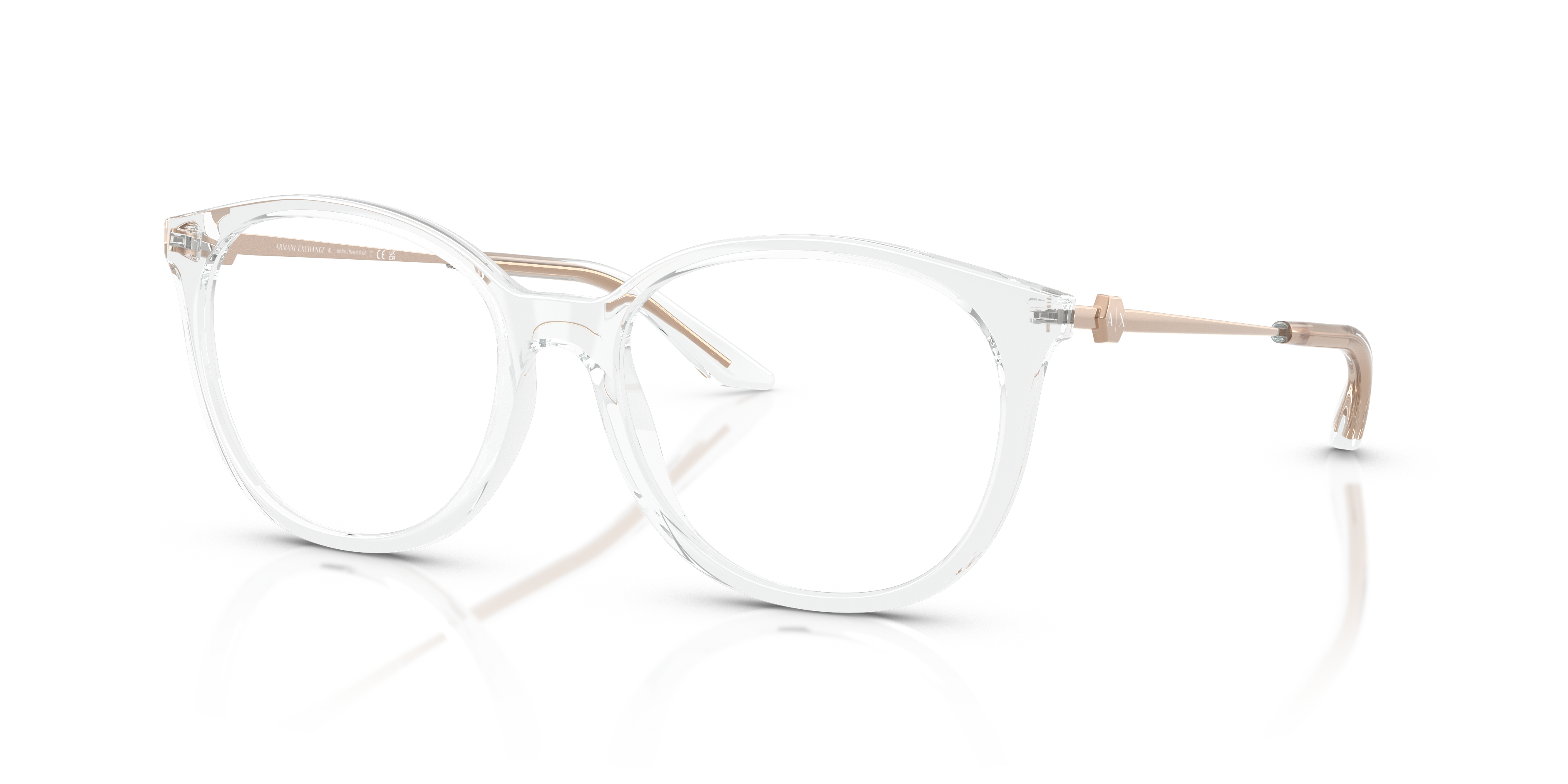 Experience the perfect blend of style and comfort with Armani Exchange AX3109. Crafted in a polished, cat eye shape, these glasses feature a shiny crystal frame color that adds a touch of glamour to your look. The polished black finish on the other side provides a sleek contrast, making these frames versatile enough for everyday wear. Embrace sophistication with these stylish shades from Armani Exchange.