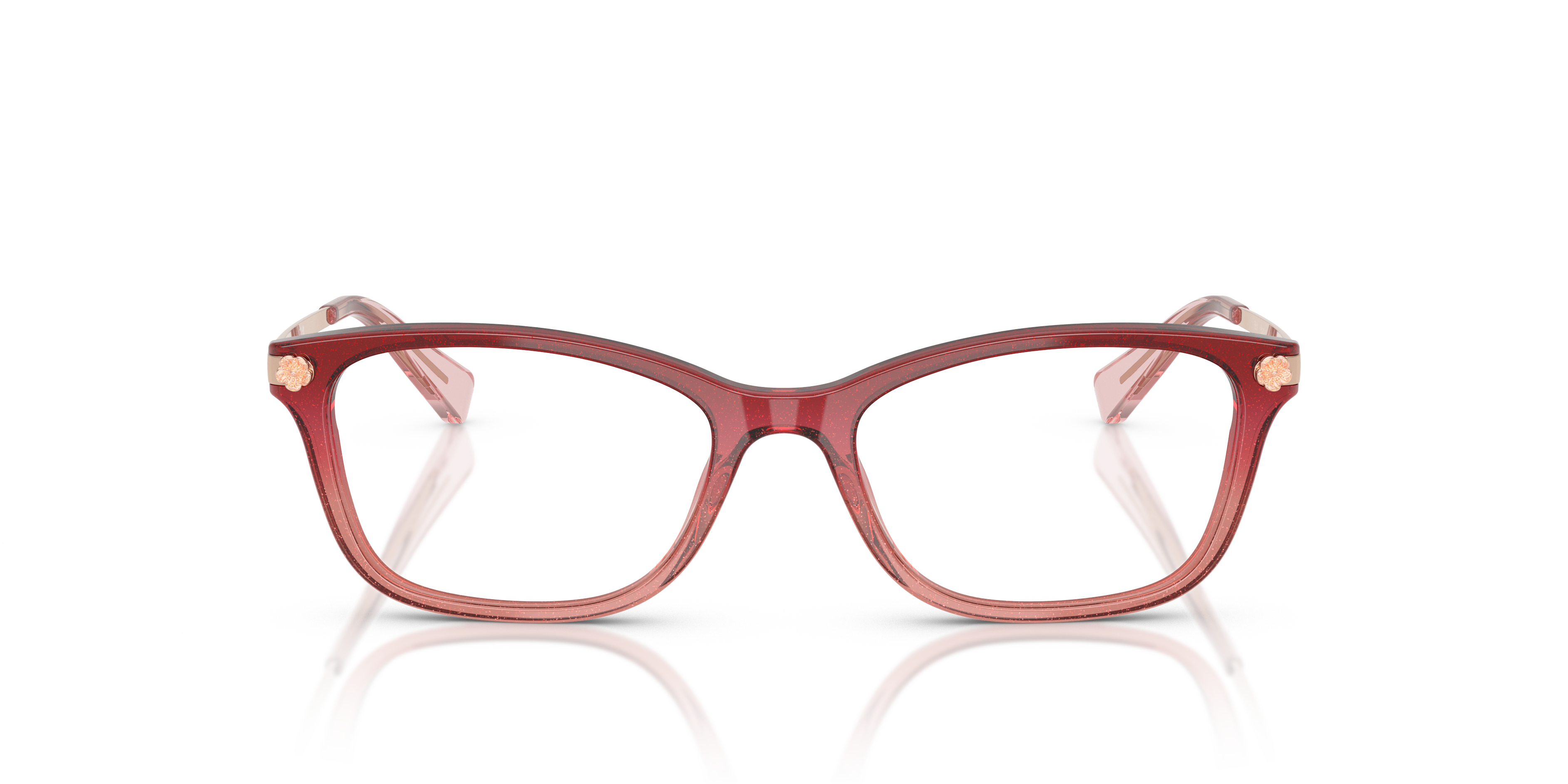 Elevate your fashion and vision standards with Coach HC6142 eyeglasses. The pillow shape, crafted from durable acetate, offers a unique twist on a timeless design. The polished finish in a rich burgundy pink glitter gradient adds a touch of glamour to any look. These frames are not only stylish but also versatile. Embrace the power of choice with Coach HC6142 eyewear. Available with prescription lenses.