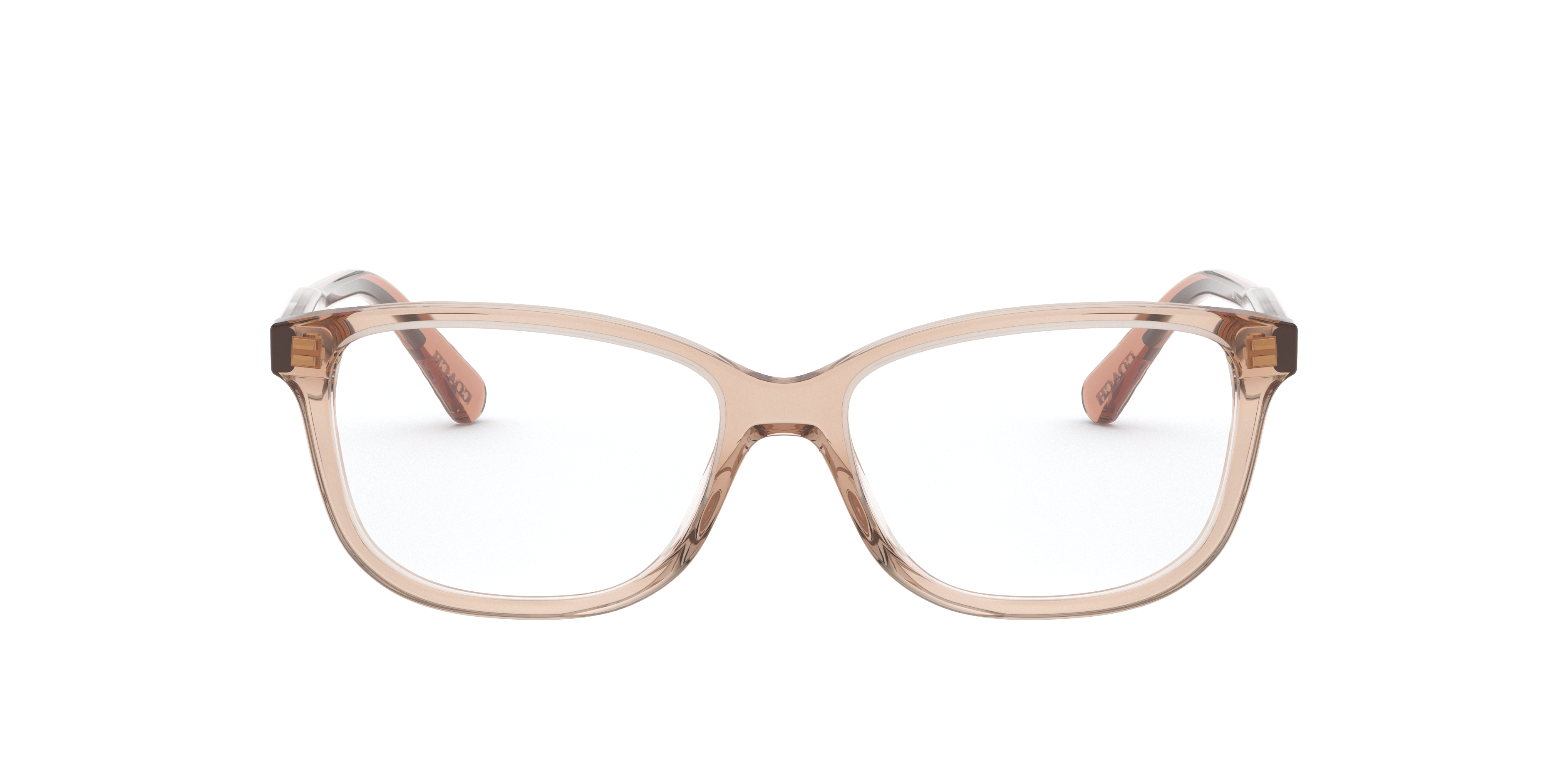 Elevate your fashion and vision standards simultaneously with Coach HC6143 eyeglasses. The pillow shape and polished finish give these frames a unique and sophisticated look. Crafted from durable acetate, the transparent peach color adds a pop of color to any outfit. These glasses are not only stylish but also practical. Available with prescription lenses.