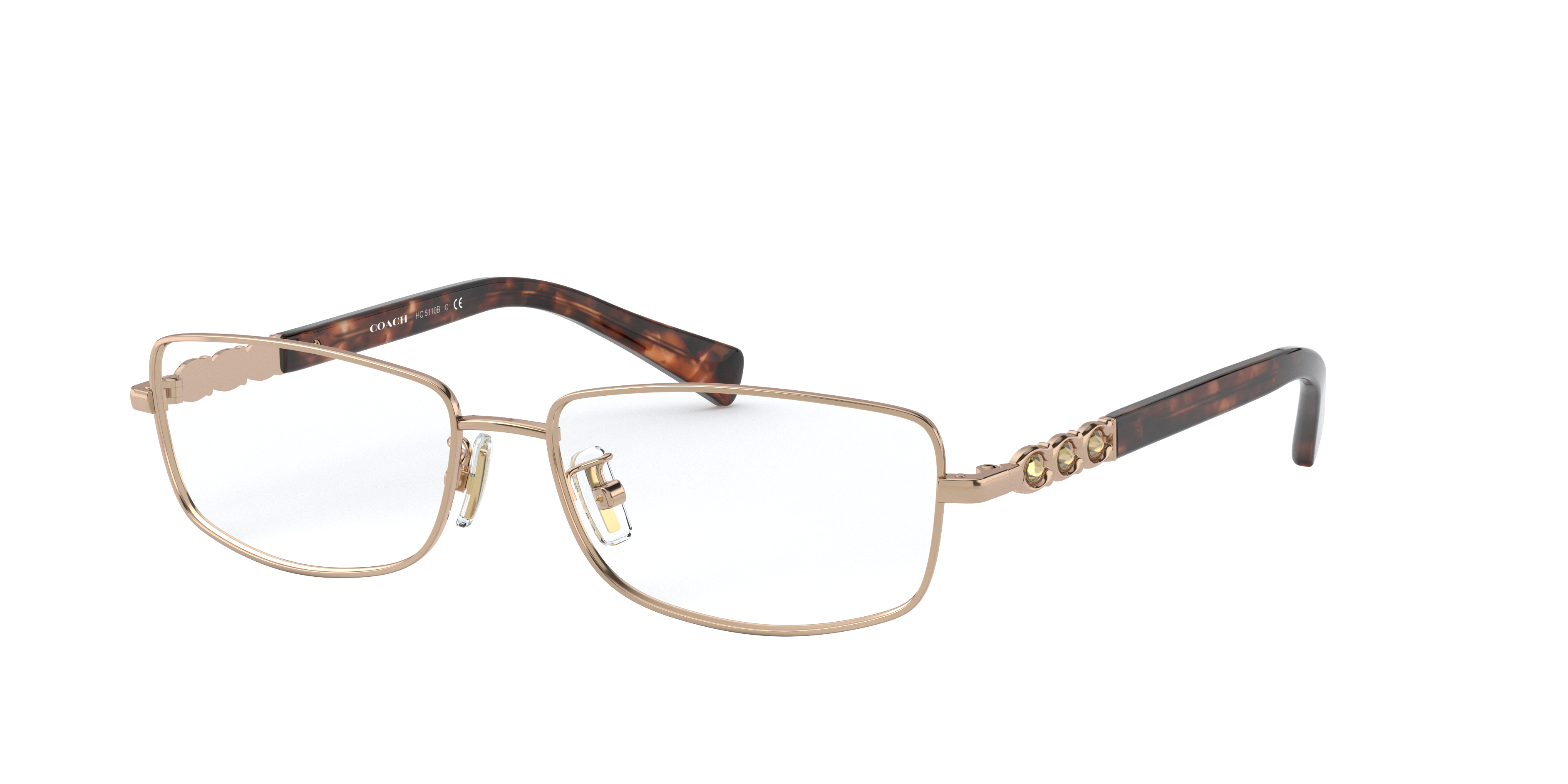 Elevate your fashion quotient with Coach HC5110B eyeglasses. The rectangle shape and polished finish of the metal frame in a striking rose gold color, make these glasses a chic accessory. Strass detail adds a touch of glamour to the overall design. These eyeglasses are not only stylish but also versatile. Embrace a modern look with these stunning Coach frames. Available with prescription lenses.