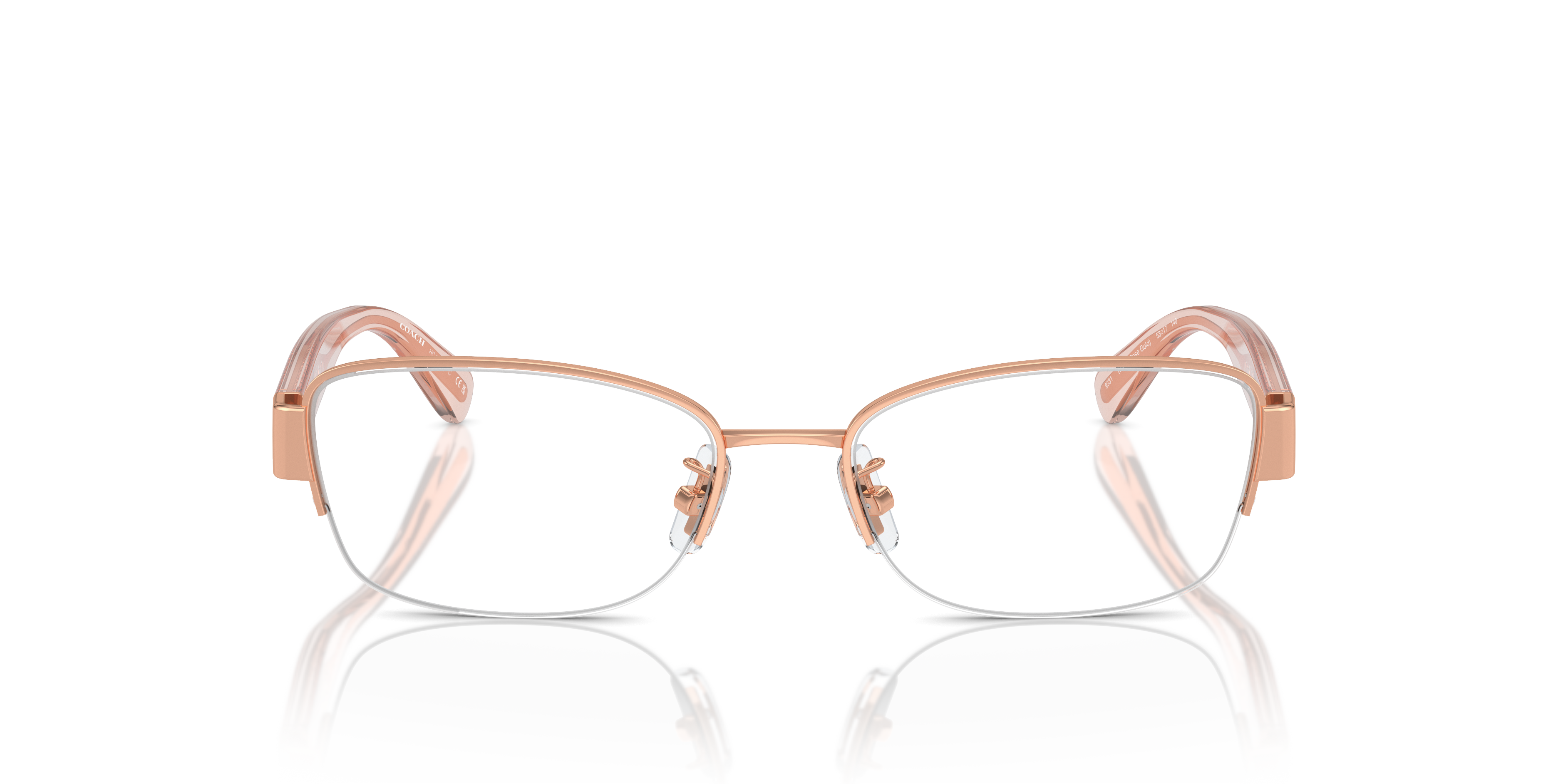 Elevate your fashion and performance standards with Coach HC5168 optical glasses. The rectangle shape, crafted from durable metal, offers a timeless appeal. The polished shiny rose gold frame color adds a touch of glamour to any look. The saddle bridge ensures a comfortable fit. These shades are a versatile choice for everyday wear. Available with prescription lenses.