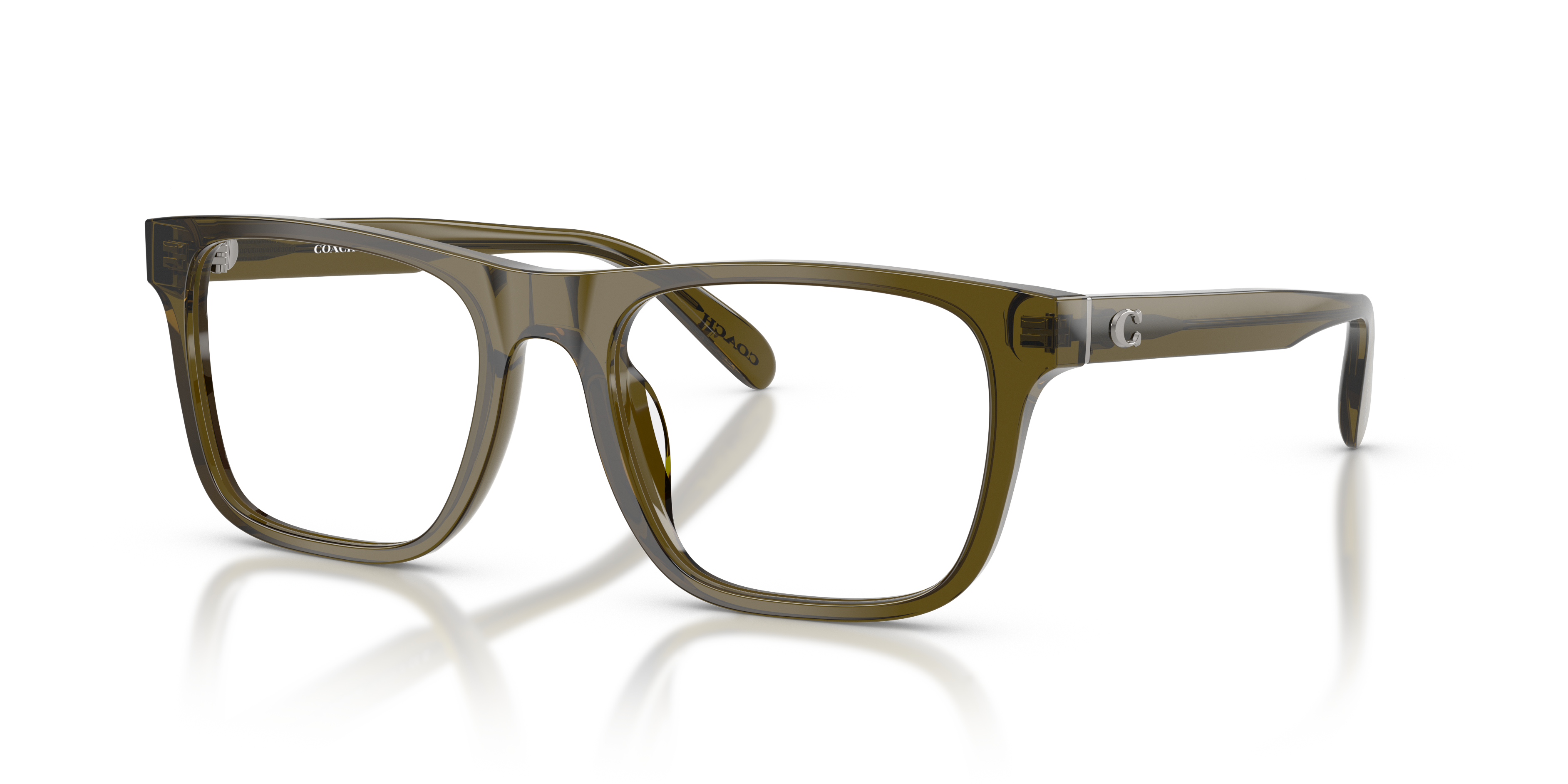 Elevate your style quotient with a pair of eyeglasses that are as functional as they are fashionable. These Coach HC6277U glasses feature a polished, transparent olive frame in a square shape, crafted from durable acetate color. The versatility of this color and shape combination makes these frames ideal for everyday wear.