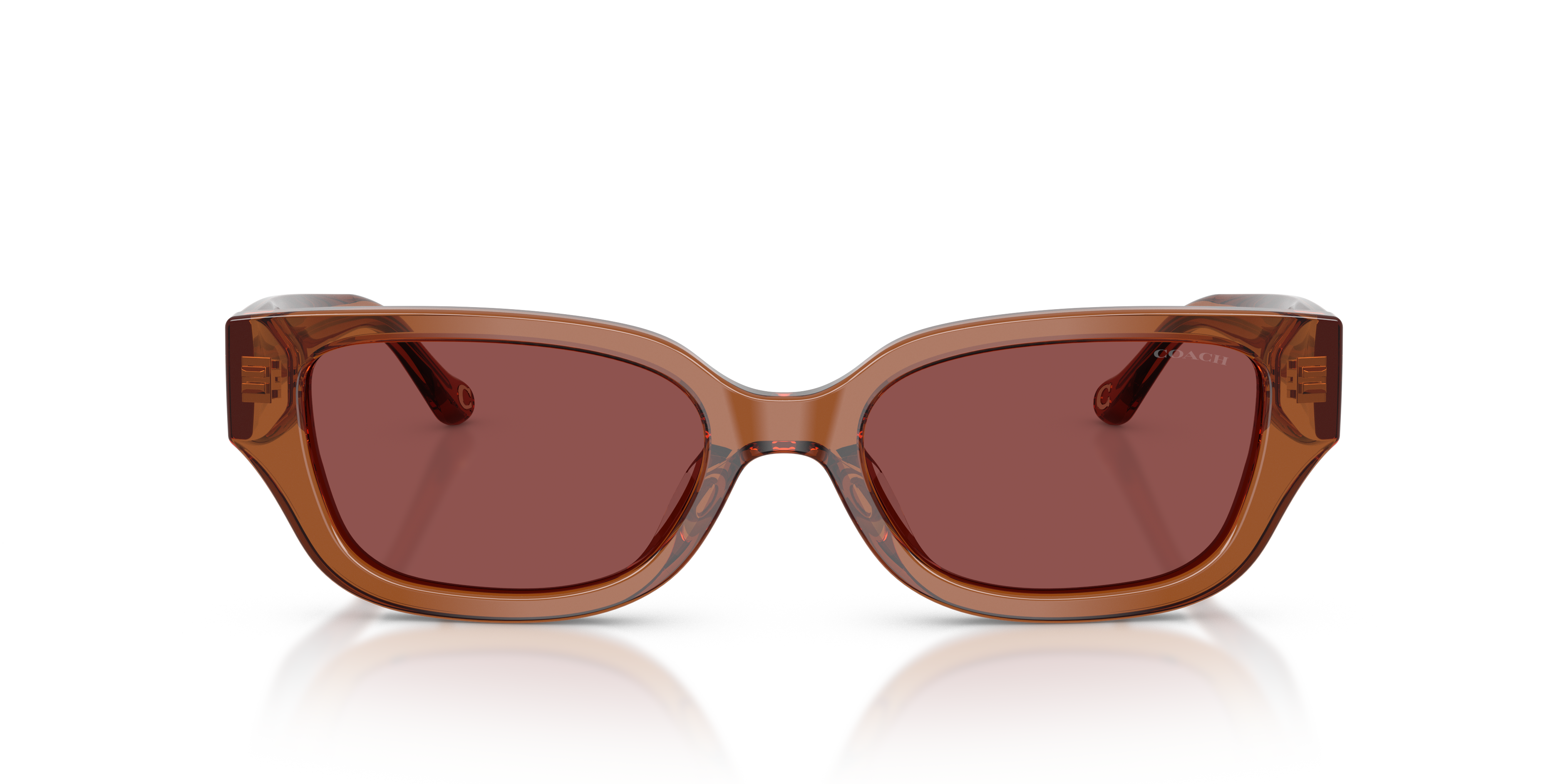 Experience the ideal blend of style and performance with Coach CBZ52 sunglasses in wine solid color lenses. These glasses feature a polished, transparent brown acetate frame in a rectangle shape that exudes sophistication. The solid color wine lenses add a touch of elegance to the design, offering optimal protection against glare and harmful rays.
