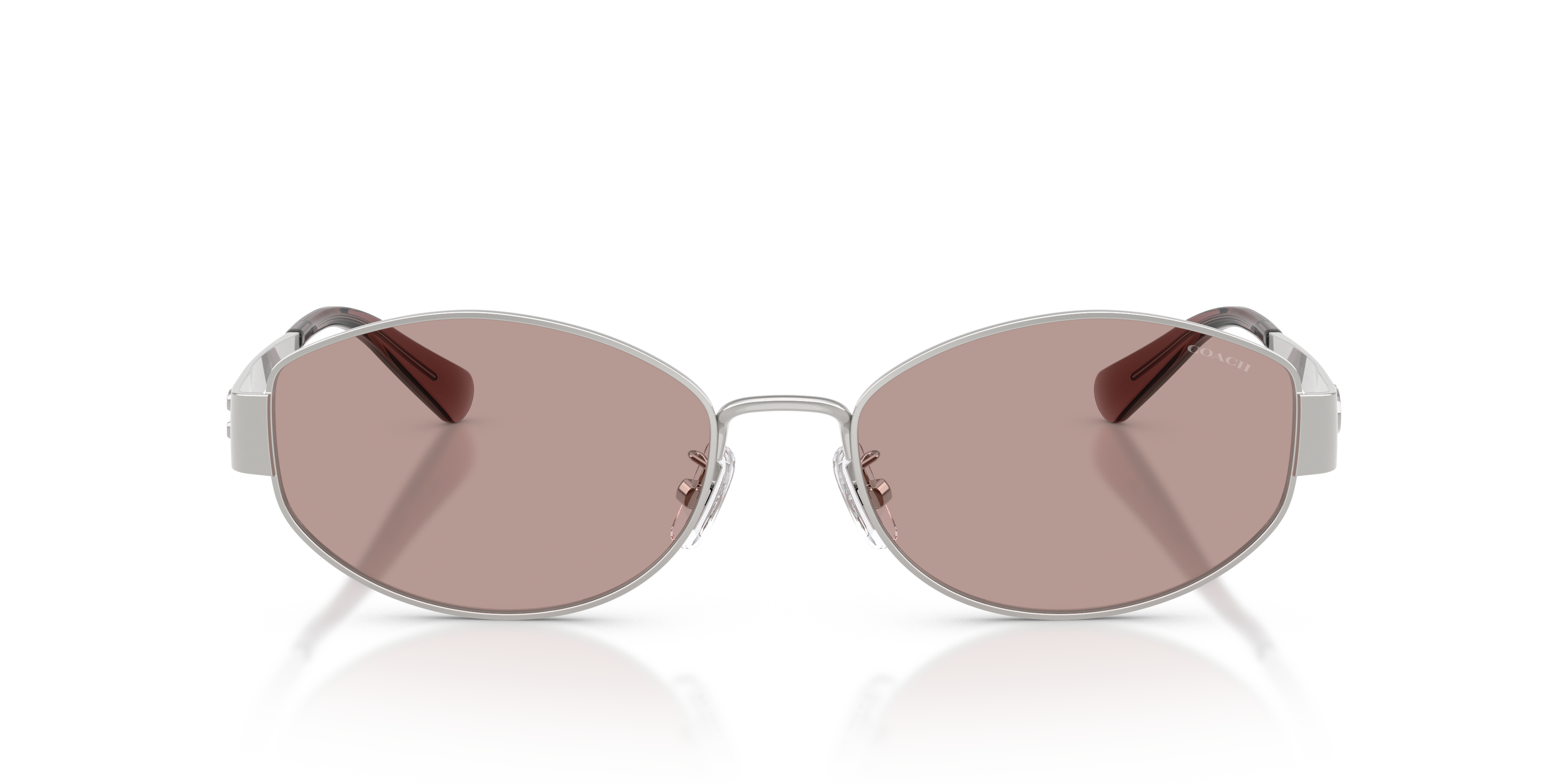 Modern sophistication meets luxury with the Coach HC7192D CDP44 sunglasses. The irregular metal frames are lightweight and feature asymmetrical designs that make a bold statement. Finished with shiny silver tones and violet solid-color lenses, these coach sunglasses offer advanced protection against UVA and UVB rays. The tapered temples showcase a laser-engraved Sculpted C logo, inspired by the iconic Idol bag. A sleek saddle bridge and low bridge fit sunglasses complete this standout design.