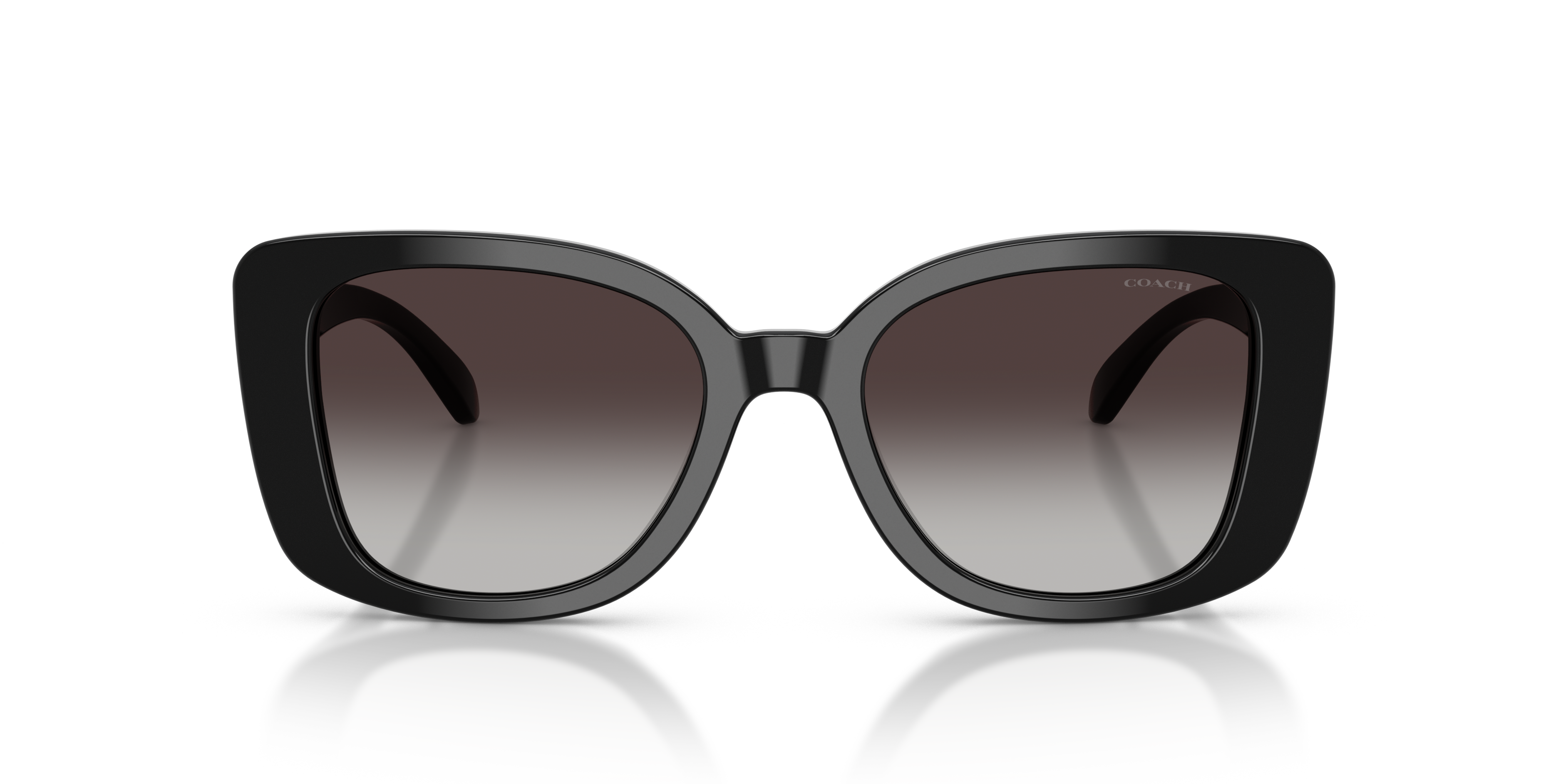 Embrace bold femininity with the Coach HC8450U CDP48 sunglasses. The square sunglasses in black acetate exude a modern edge with strong lines and sharp angles. A subtle Signature C pattern highlights Coach's rich design heritage, while the gradient sunglasses with grey lenses add a playful touch. Complete with a saddle bridge and sunglasses with a universal fit, these black Coach sunglasses deliver timeless style infused with New York attitude.