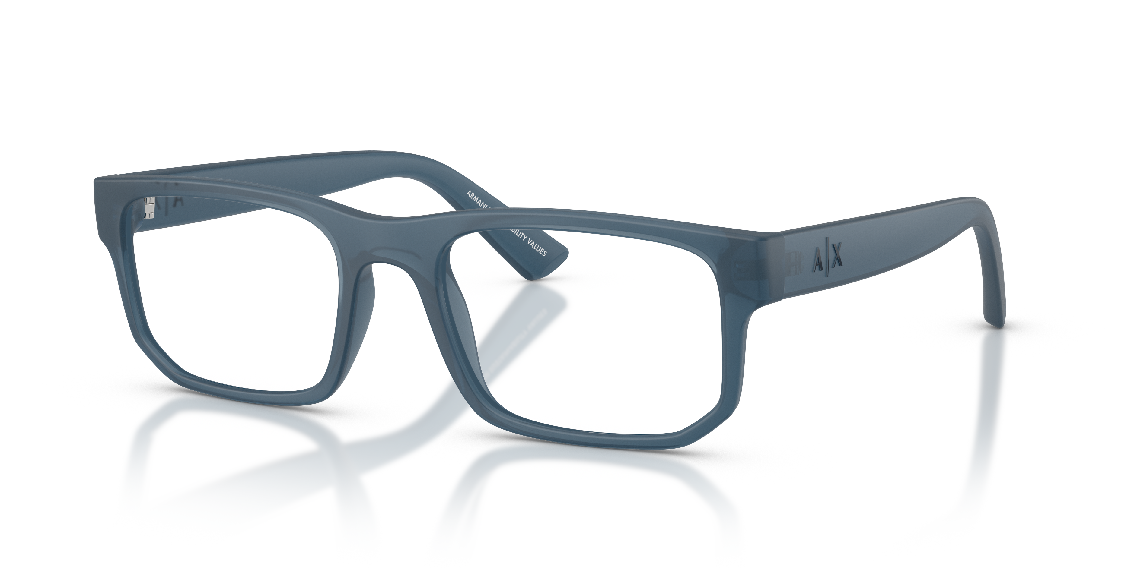 Elevate your style with Armani Exchange AX3135. Crafted in a sleek rectangle shape, these glasses feature a matte finish in a striking frosted blue color, offering a modern and sophisticated look. The frame is designed to be durable and lightweight, making it comfortable to wear throughout the day. These shades are not just stylish but also practical.