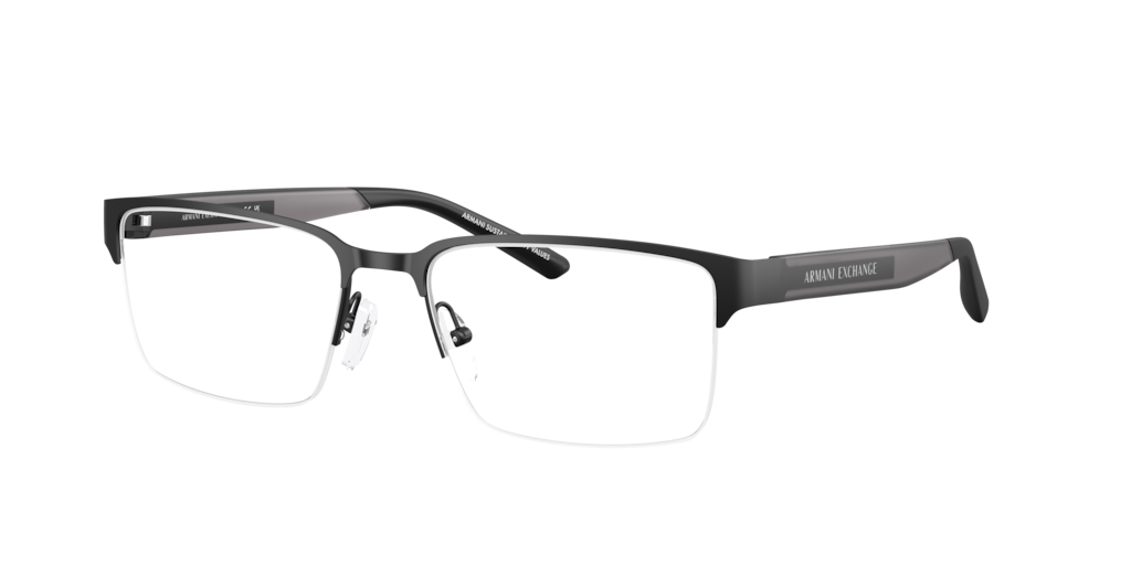The Armani Exchange AX1075 optical glasses feature sleek semi-rim rectangular frames crafted from lightweight metal. Designed with bi-injected temples that combine solid and transparent tones, they offer a sporty, modern touch. An adjustable nosepad ensures comfort, while the matte black eyeglasses front lends an urban edge. Complete with the iconic Armani Exchange logo, these frames for men deliver effortless sophistication.