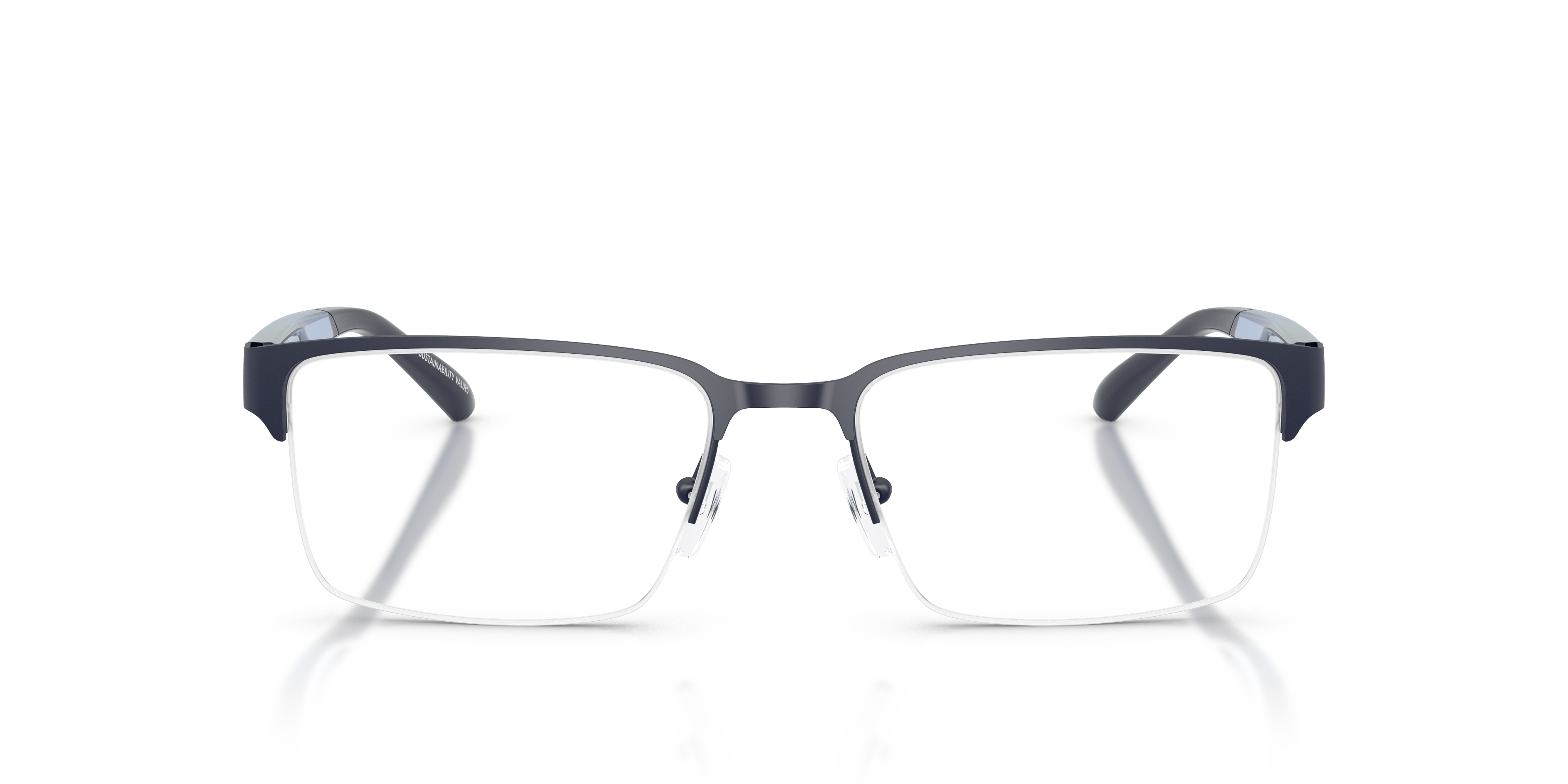 Elevate your eyewear with the Armani Exchange AX1075 optical glasses. The clean rectangular metal frames showcase a lightweight feel and sleek structure, making them ideal glasses for men seeking style and comfort. Matte blue accents bring a modern, sporty touch paired with innovative injected temples that blend solid and transparent tones. Finished with the iconic Armani Exchange logo, these matte blue eyeglasses deliver an urban edge with effortless style. Eyeglasses with adjustable nosepads ensure a fit made for all-day wear.