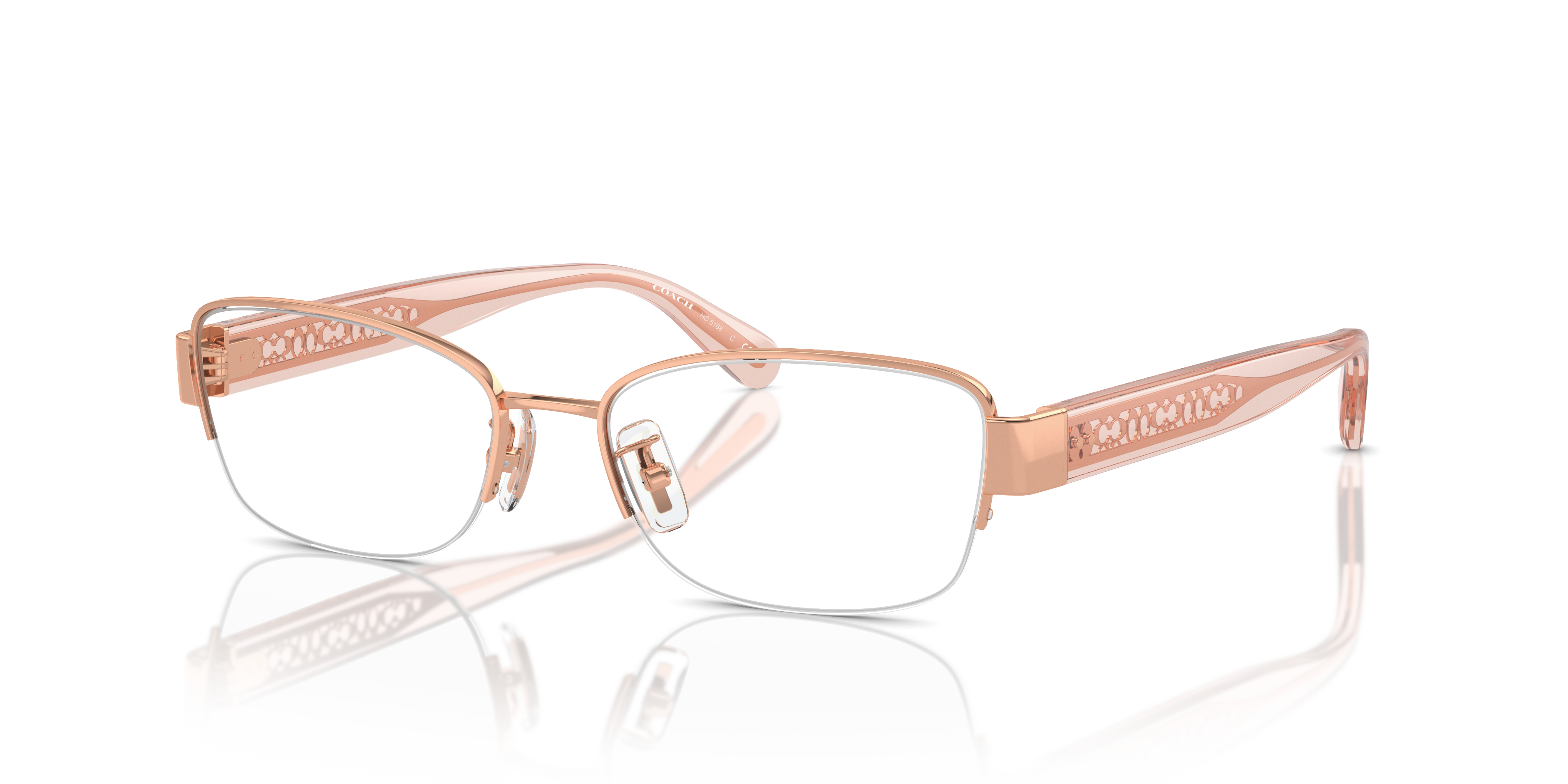 Elevate your fashion and performance standards with Coach HC5168 optical glasses. The rectangle shape, crafted from durable metal, offers a timeless appeal. The polished shiny rose gold frame color adds a touch of glamour to any look. The saddle bridge ensures a comfortable fit. These shades are a versatile choice for everyday wear. Available with prescription lenses.