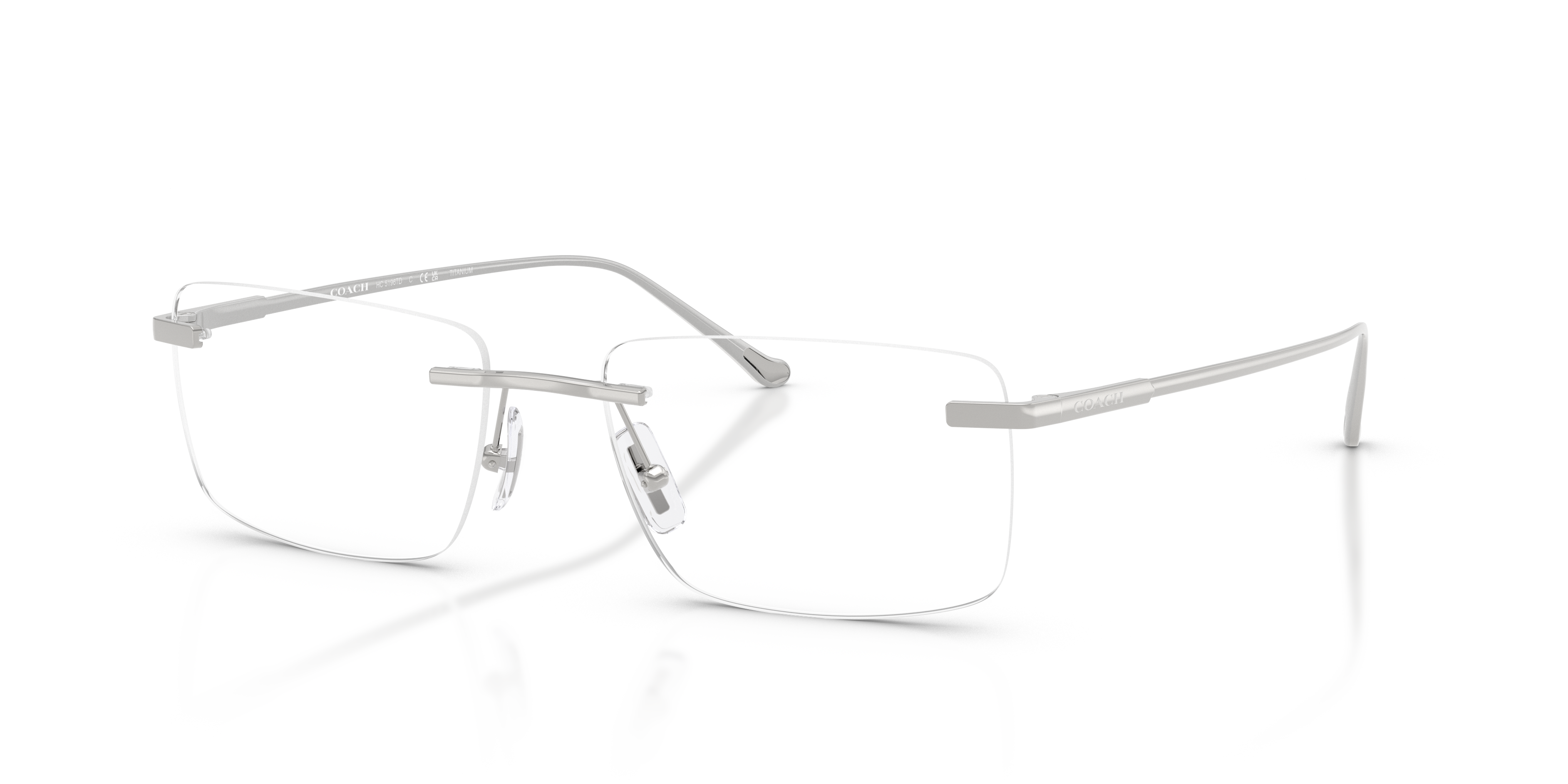 Experience the ideal fusion of sophistication and functionality with Coach HC5196TD in shiny silver. Crafted from titanium, these lightweight and durable glasses feature a polished shiny silver frame that adds a touch of elegance to any look. These rectangle-shaped frames also include a saddle bridge for added comfort. Embrace the timeless appeal of Coach while staying on trend with these sleek shades.