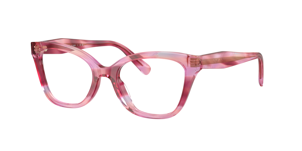 Showcasing feminine charm, the Coach HC6290U optical glasses feature elegant cat eye glasses in a striking violet hue. Crafted from acetate, the temples reveal a sophisticated metal core wire through transparent layers, blending classic craftsmanship with modern style. Designed as eyeglasses with a universal fit, these glasses offer timeless appeal with contemporary flair.