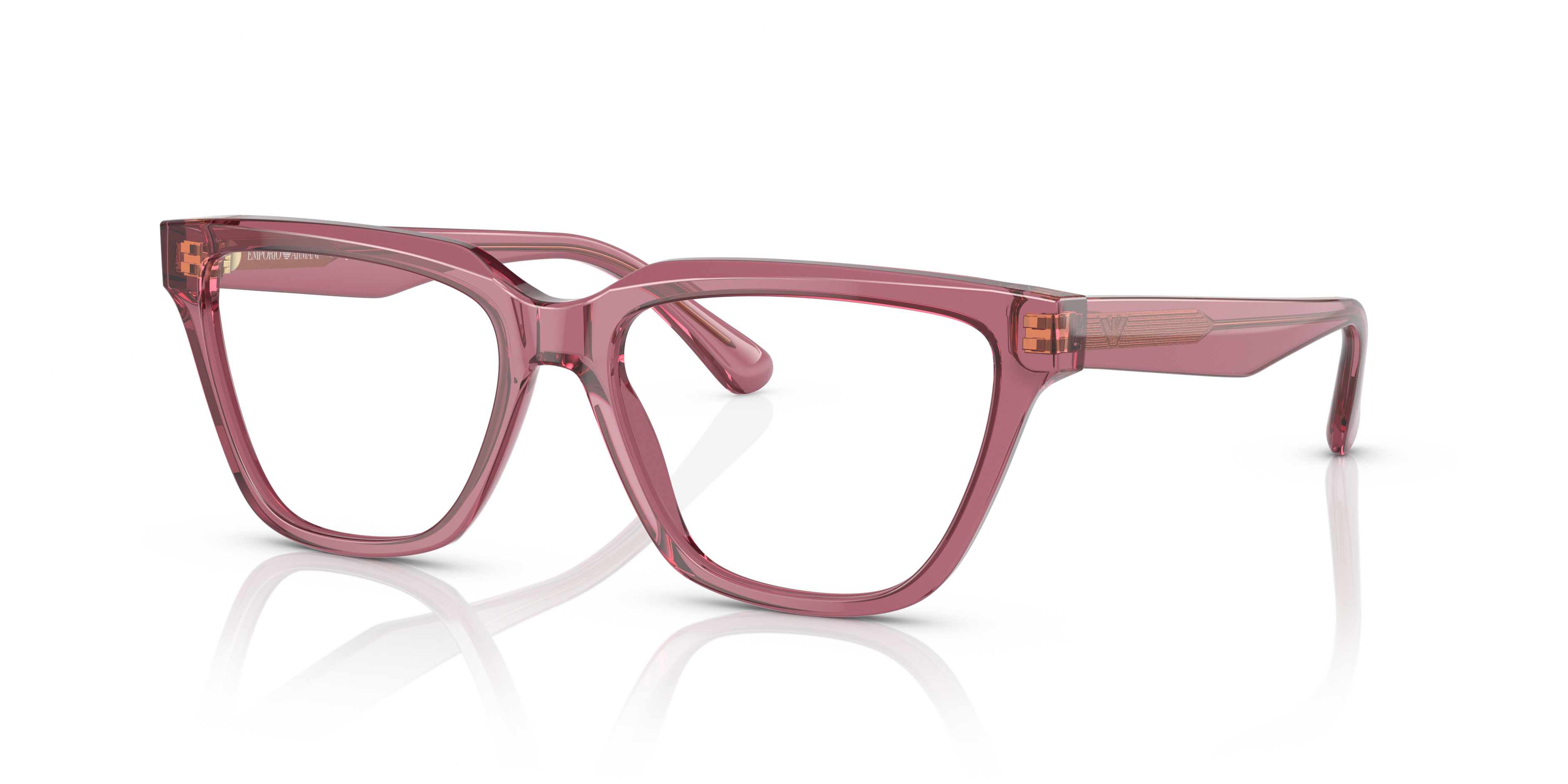 Experience the perfect blend of style and sophistication with Emporio Armani EA3208 eyeglasses. The cat-eye shape adds a touch of vintage glamour, while the polished finish and shiny transparent pink color give these frames a modern twist. Crafted from durable acetate, these glasses are as practical as they are stylish. Embrace your unique sense of fashion with Emporio Armani EA3208 eyewear. Available with prescription lenses.