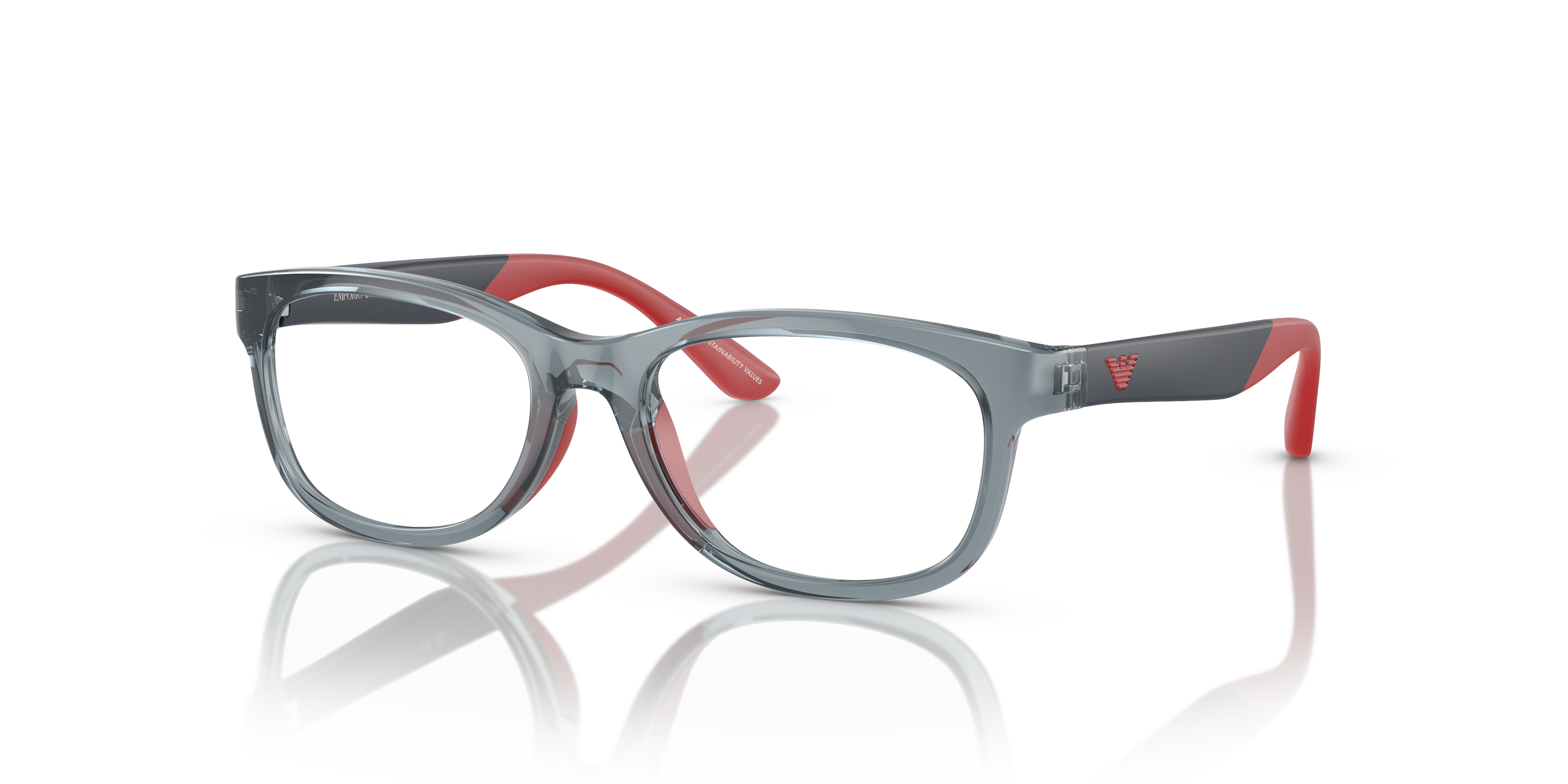 Emporio Armani EK3001 Kids eyeglasses are a playful yet sophisticated choice for your little one. The polished, shiny transparent blue frame offers a modern twist on the pillow shape, creating a unique and stylish look. These glasses are not only trendy but also practical, providing optimal visibility for your child. Embrace your child's individuality with these eyeglasses from Emporio Armani.
