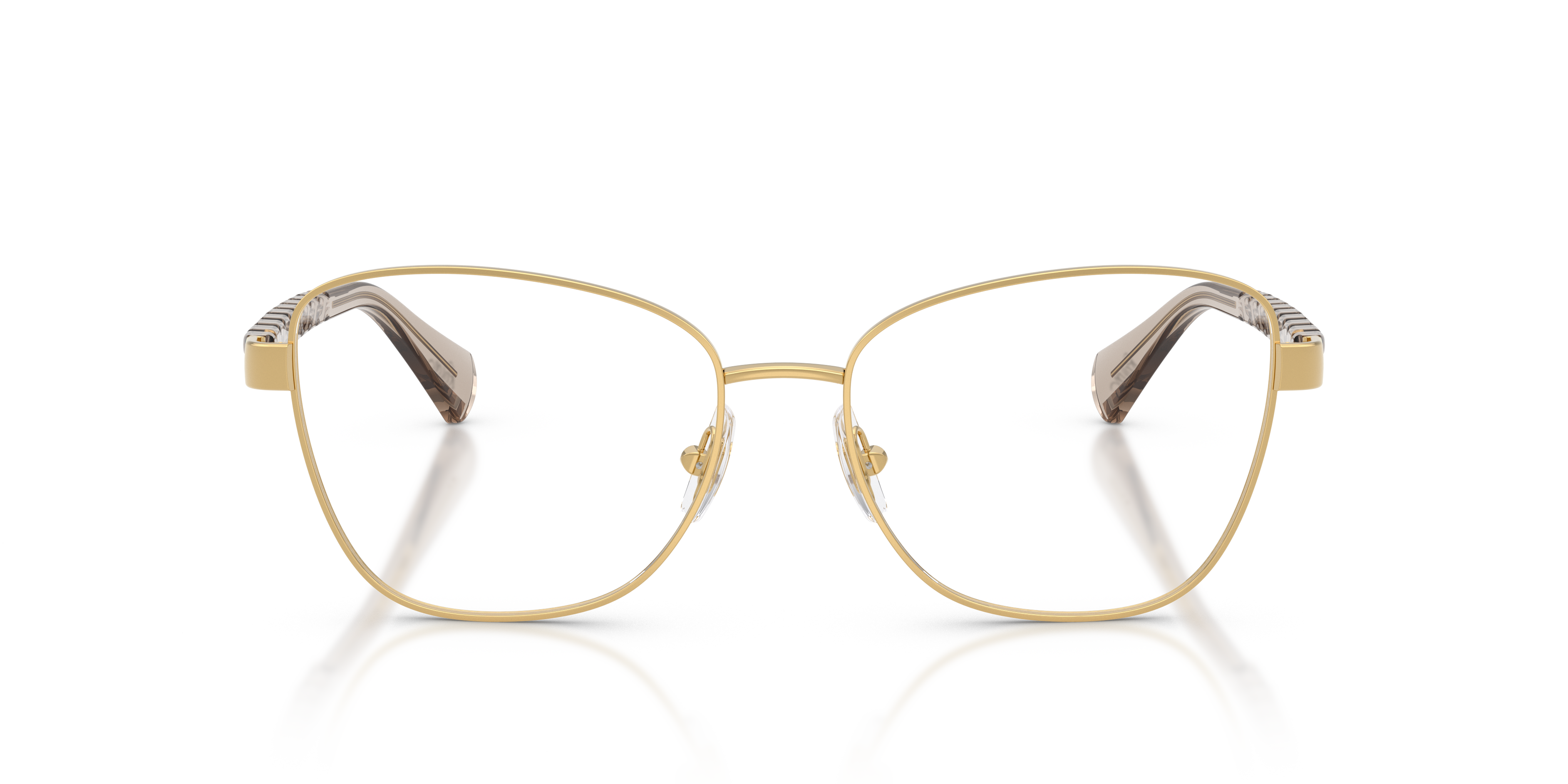 Elevate your everyday style with the Ralph RA6064 optical glasses. These oversized irregular glasses, crafted from lightweight metal, feature a softly asymmetrical design that makes a bold statement. The injected temples are inspired by cable knits and chain motifs, adding a distinctive touch. Finished with shiny gold eyeglasses fronts and the Ralph script logo at the tips, they combine elegance and personality with an adjustable nose bridge for a comfortable fit.