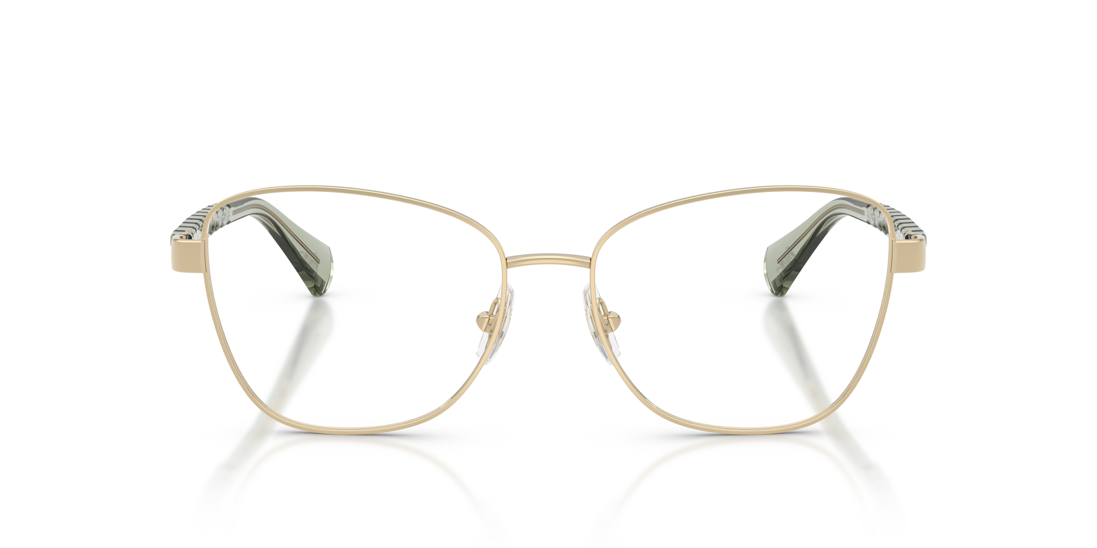 Elevate your everyday look with the Ralph RA6064 optical glasses. These full-rim oversized frames feature a softly irregular metal front in shiny pale gold for lightweight sophistication. The injected temples, inspired by cable knits and chain motifs, add an artistic touch, while adjustable nosepads eyeglasses ensure comfort. Finished with the Ralph script logo at the tips, these versatile glasses embody effortless style.