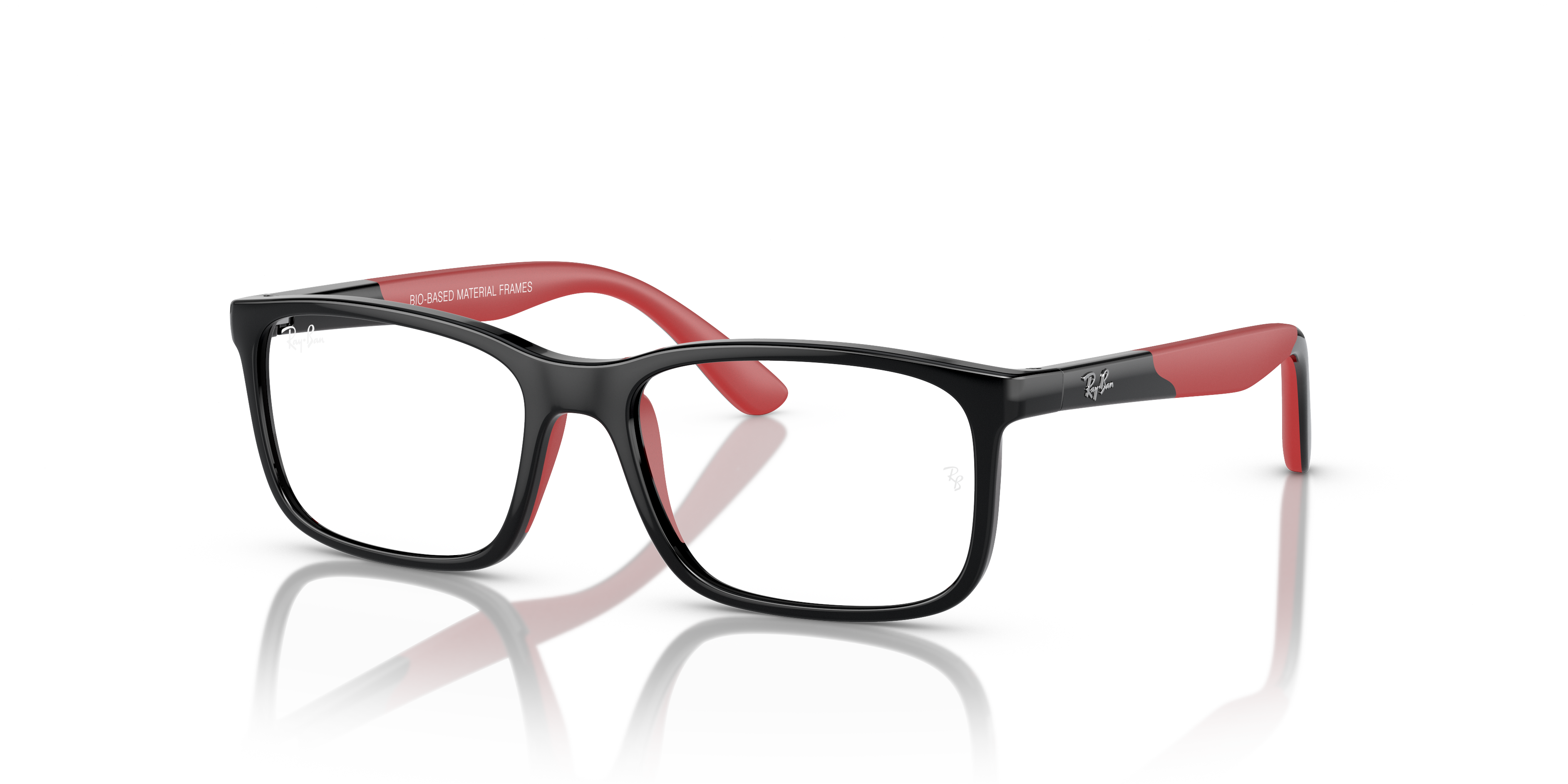 Ray-Ban RB1621 Optics Kids Bio-Based eyeglasses are a perfect blend of style and comfort for your little ones. The polished black on red frame, paired with a rectangle shape, gives these glasses a modern and trendy look. Crafted from bio-based material, these frames are durable and lightweight, ensuring all-day comfort. Available with prescription lenses.