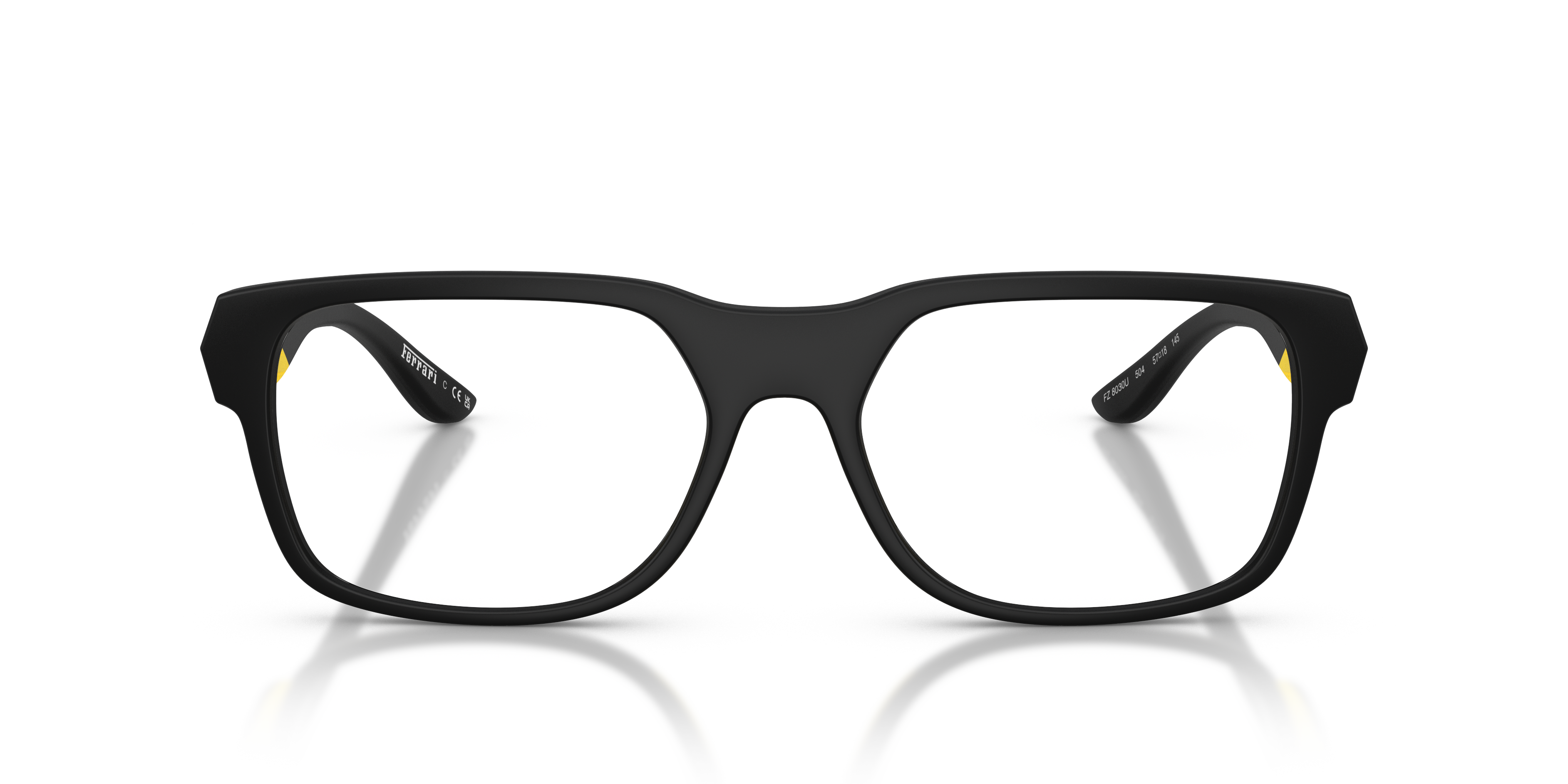 Injecting trackside energy into everyday eyewear, the Scuderia Ferrari FZ8030U optical frames boast a bold irregular design crafted from durable nylon and propionate. Race car-inspired rubber injections enhance the temples, while flashes of iconic Scuderia Ferrari colors add a dynamic flair. Universal fit glasses ensure all-day comfort, complete with black matte frames for sleek sophistication.