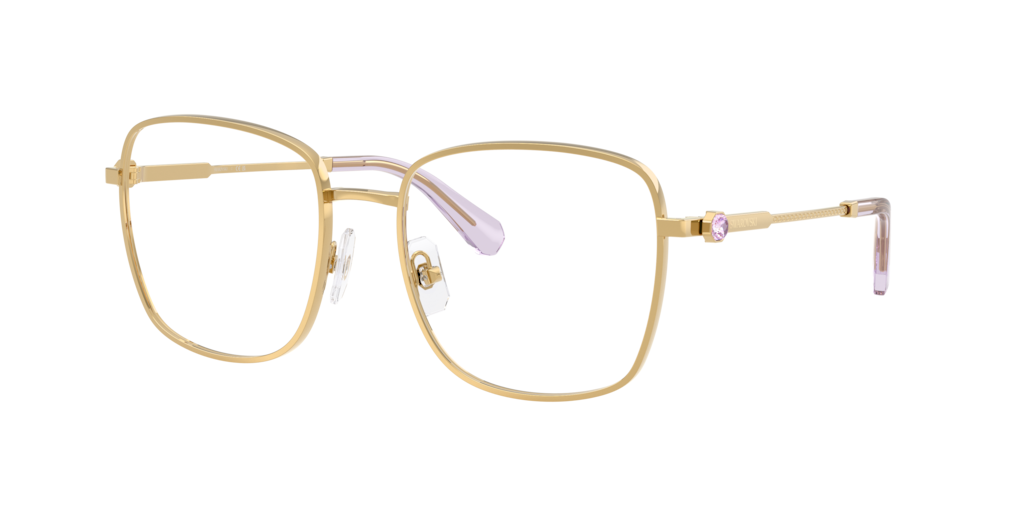 Elevate your style with the Swarovski SK1036 optical glasses. Crafted from lightweight metal, these full-rim square frames exude modern elegance with their sharp lines and structured silhouette. The gold glasses' finish and adjustable nosepads enhance comfort and sophistication. Strass crystals embellish the temples, adding a luminous touch worthy of the Swarovski name. Perfect for those who appreciate refined design with a hint of sparkle.