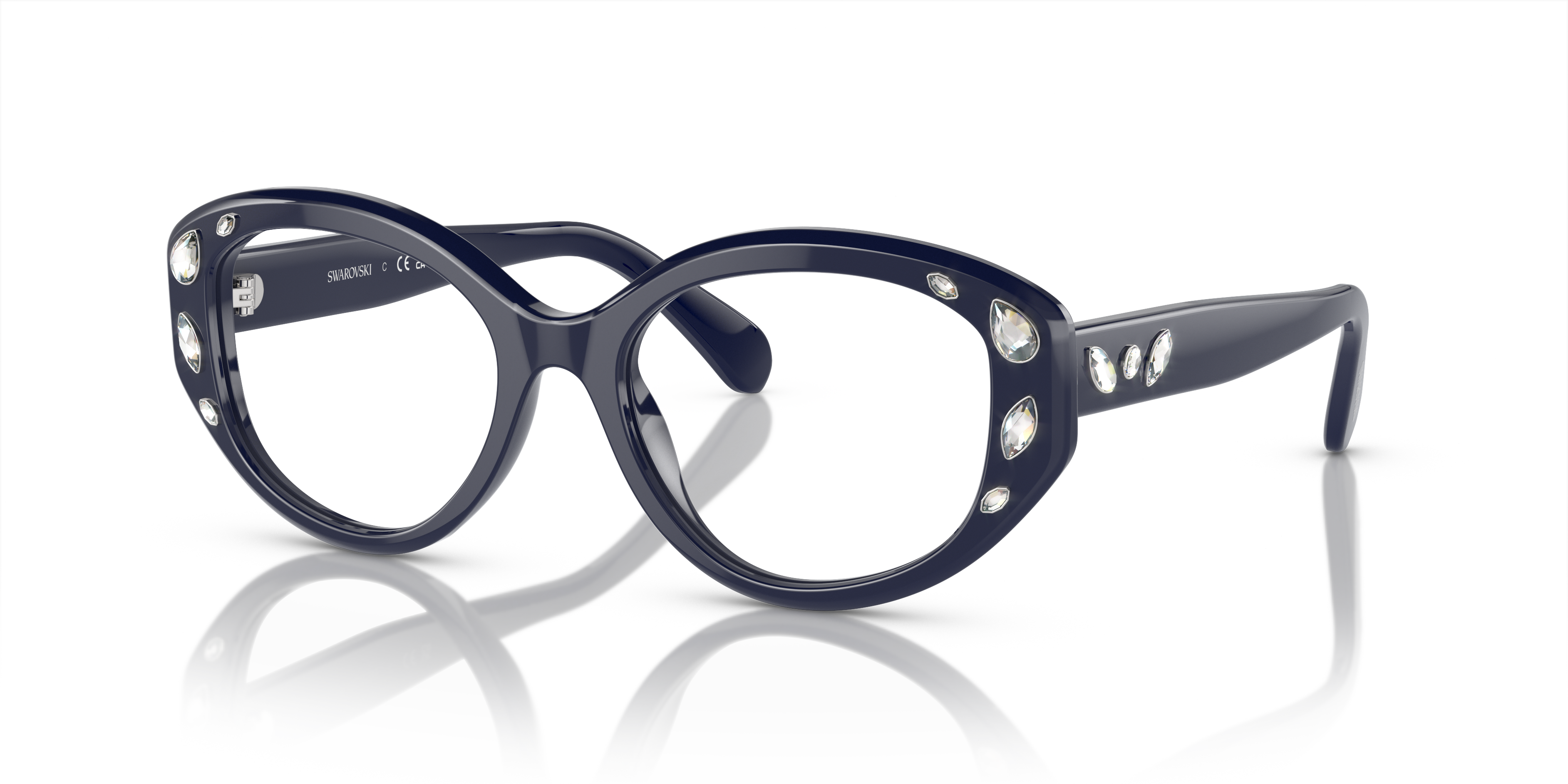 Discover the impeccable synergy of style and performance in Swarovski SK2006 eyeglasses. The irregular shape adds a unique twist to the traditional design, while the polished opal blue finish exudes elegance. Crafted from durable acetate, these frames are designed to last. Strass detailing adds a touch of glamour. These eyeglasses are not only stylish but also practical. Available with prescription lenses.