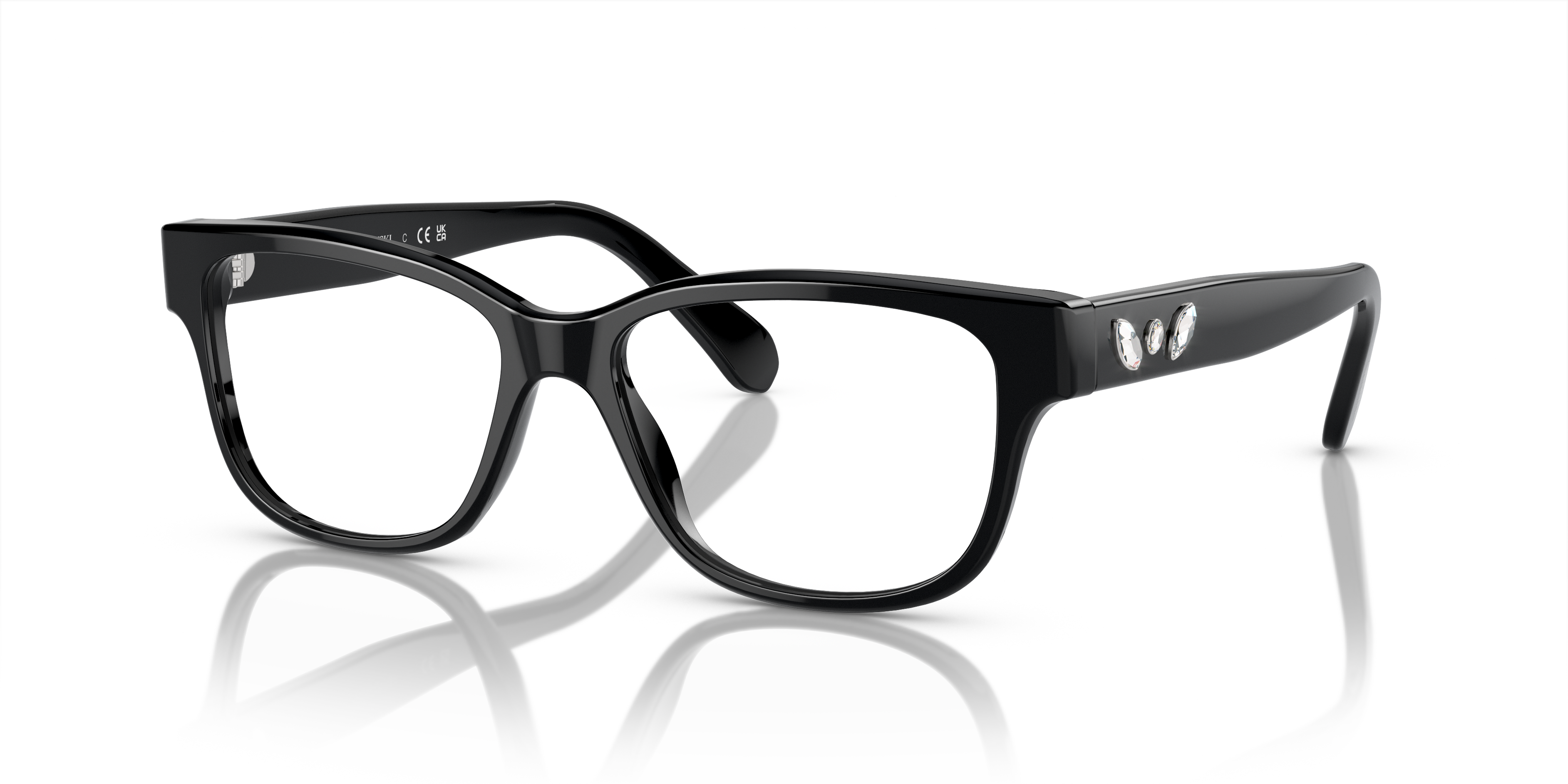 Discover the impeccable synergy of style and performance in Swarovski SK2007 eyeglasses. The polished black acetate frame, combined with the pillow shape, exudes a sophisticated and contemporary appeal. Strass detailing adds a touch of glamour to these frames, making them a must-have accessory for fashion-forward individuals. These glasses are not only stylish but also practical. Available with prescription lenses.