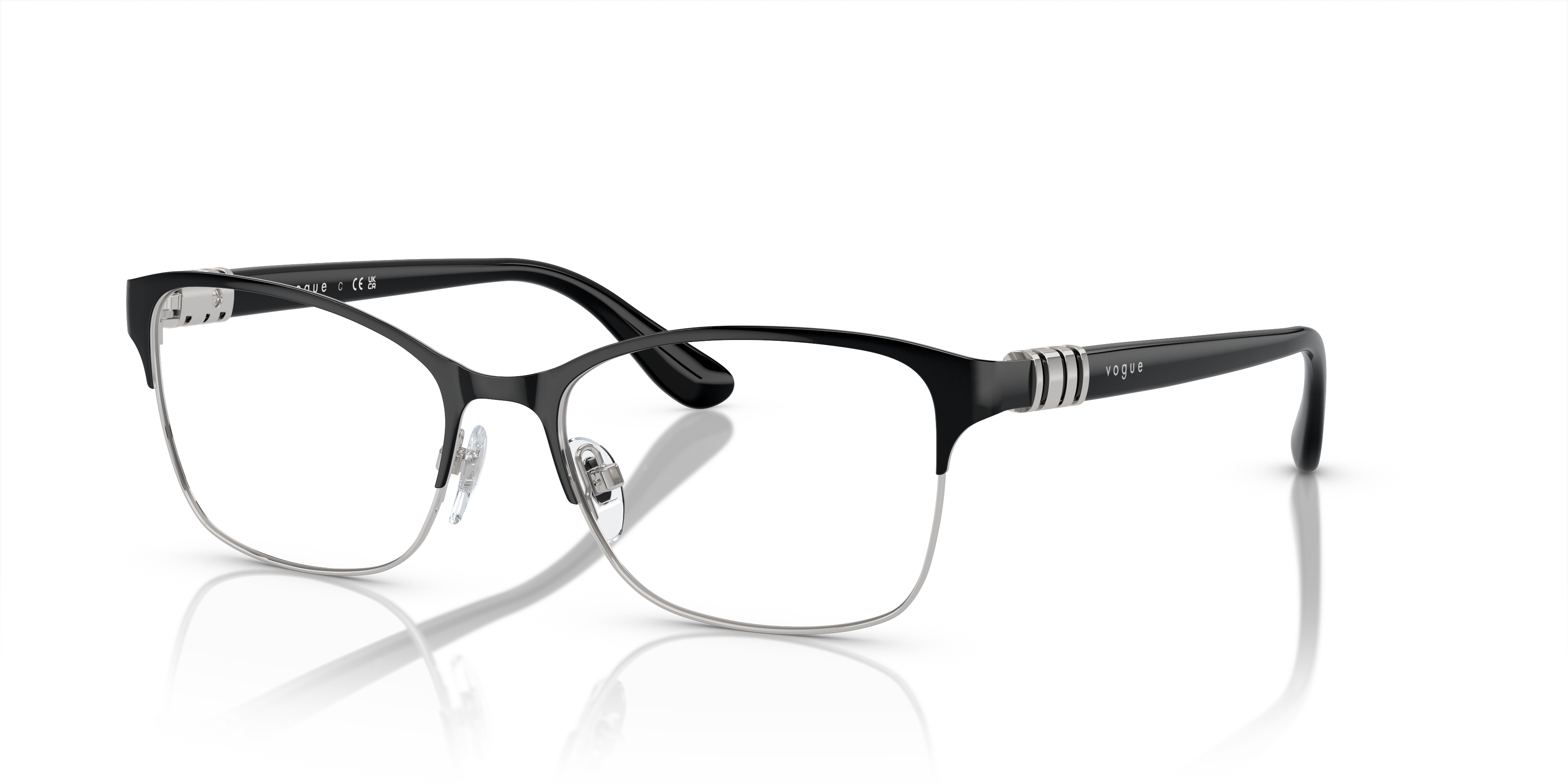 Elevate your fashion and optical standards with Vogue Eyewear VO4050 eyeglasses. The polished metal frame offers a sleek, modern look while the pillow shape adds a touch of vintage charm. The top brown/pale gold color is complemented by gold accents on the temples, creating a sophisticated yet casual aesthetic. These glasses feature a saddle bridge for added comfort, making them as practical as they are stylish. Available with prescription lenses.