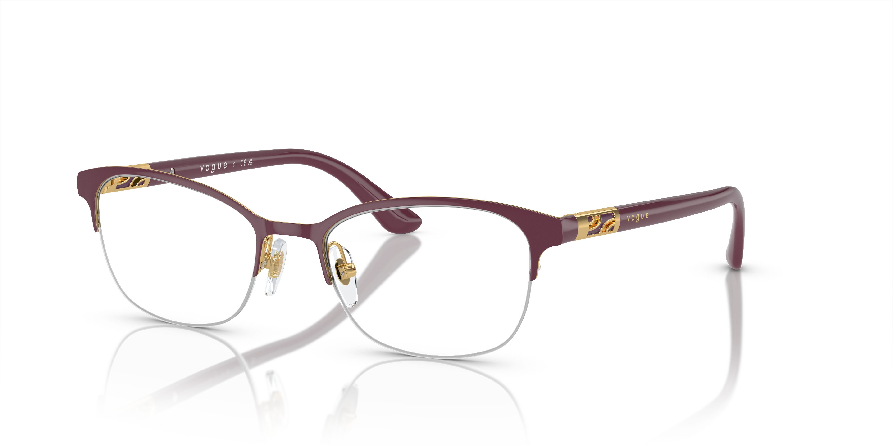 Elevate your fashion while optimizing utility with Vogue Eyewear VO4067 eyeglasses. The pillow shape and polished metal frame, in a striking violet color, exude elegance and sophistication. These shades are not just a fashion statement but also a practical accessory. Embrace the unique and standout from the crowd with these distinctive frames. Available with prescription lenses.