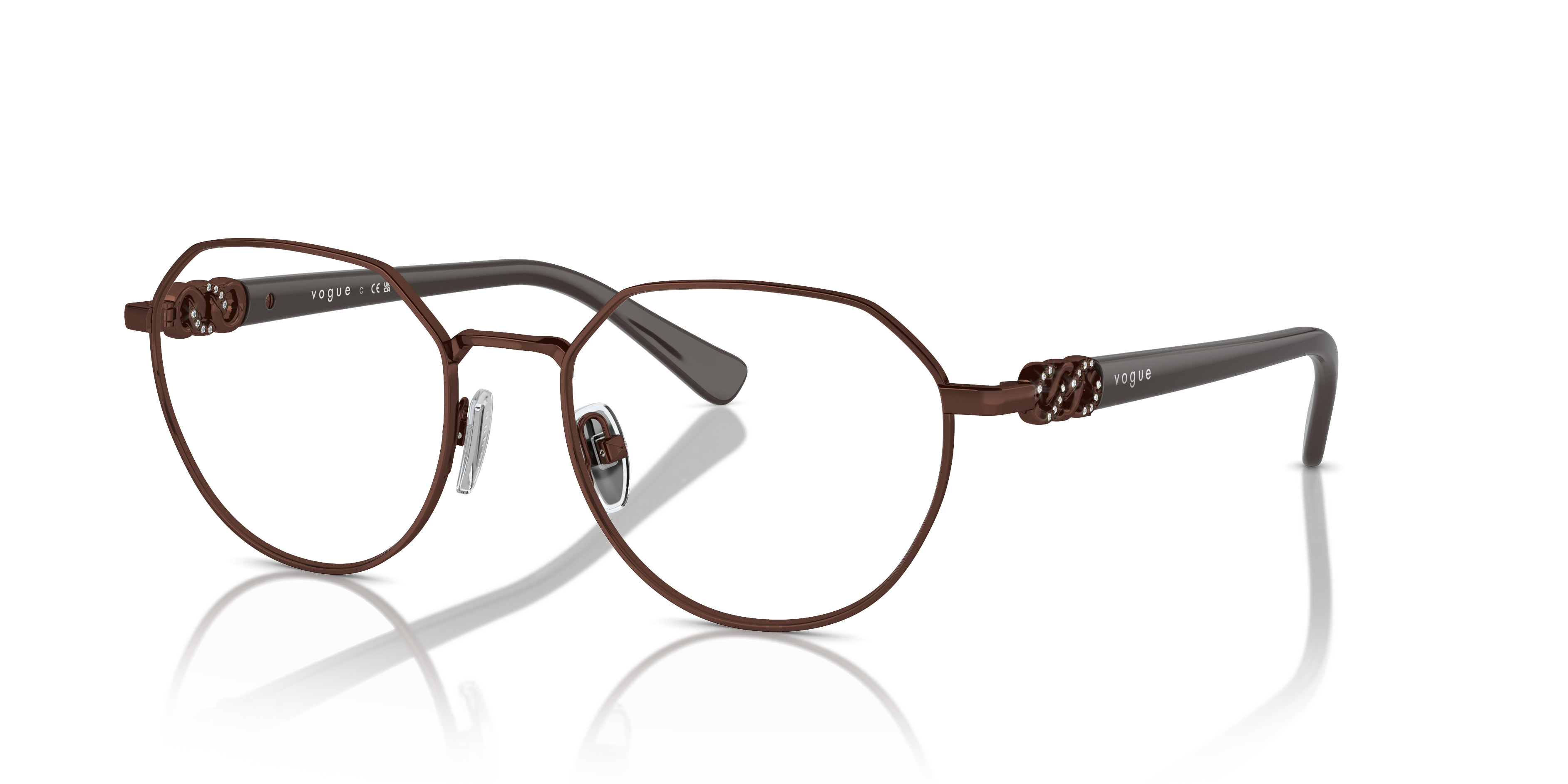 Vogue Eyewear VO4311B Optical redefines the boundaries of style and performance integration. The irregular shape and polished metal frame, in a striking copper color, are enhanced by the addition of strass. These glasses showcase a unique design that is sure to turn heads. Embrace your individuality with this stunning pair of shades. Available with prescription lenses.