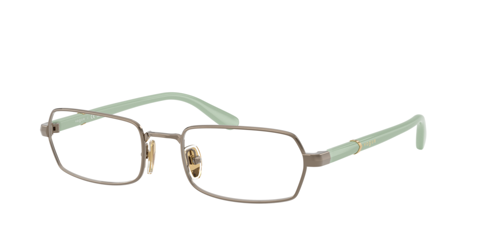 Elevate your everyday look with the Vogue Eyewear VO4351 optical glasses. The irregular eyeglasses feature a lightweight metal construction in a chic light brown hue. Frames with adjustable nosepads ensure a customized fit, while propionate temples showcase a striking metal detail adorned with the signature Vogue Eyewear logo. Minimalist design meets bold sophistication in this standout pair.
