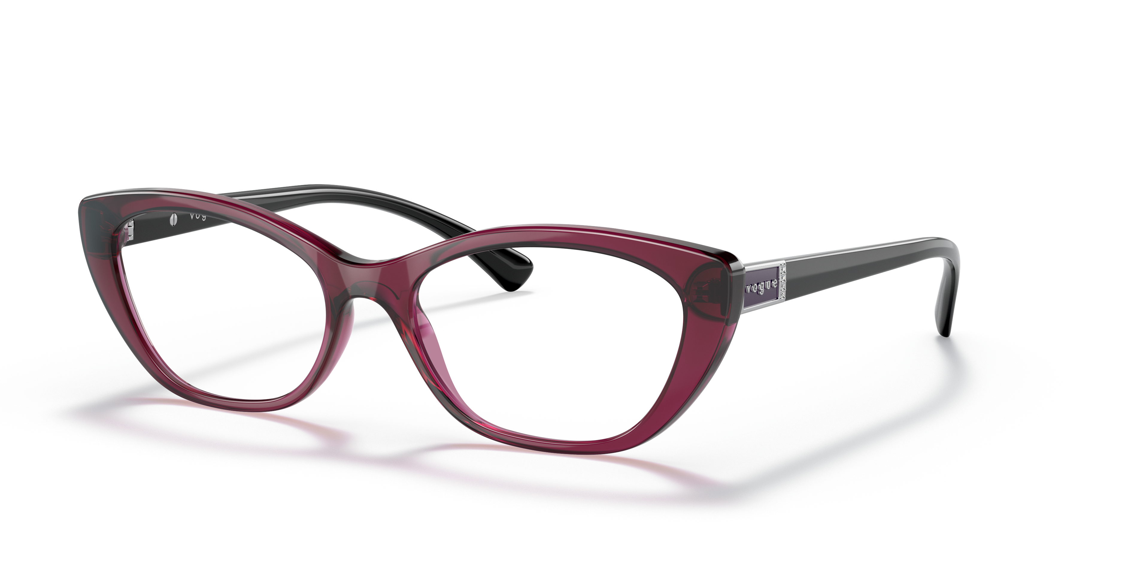 Elevate your fashion game with these Vogue Eyewear VO5425B eyeglasses. The polished, transparent dark cherry frame color is accented with strass, adding a touch of glamour to the oval shape. These glasses are not only stylish but also functional. Embrace your unique style and step out in confidence wearing these chic frames. Available with prescription lenses.