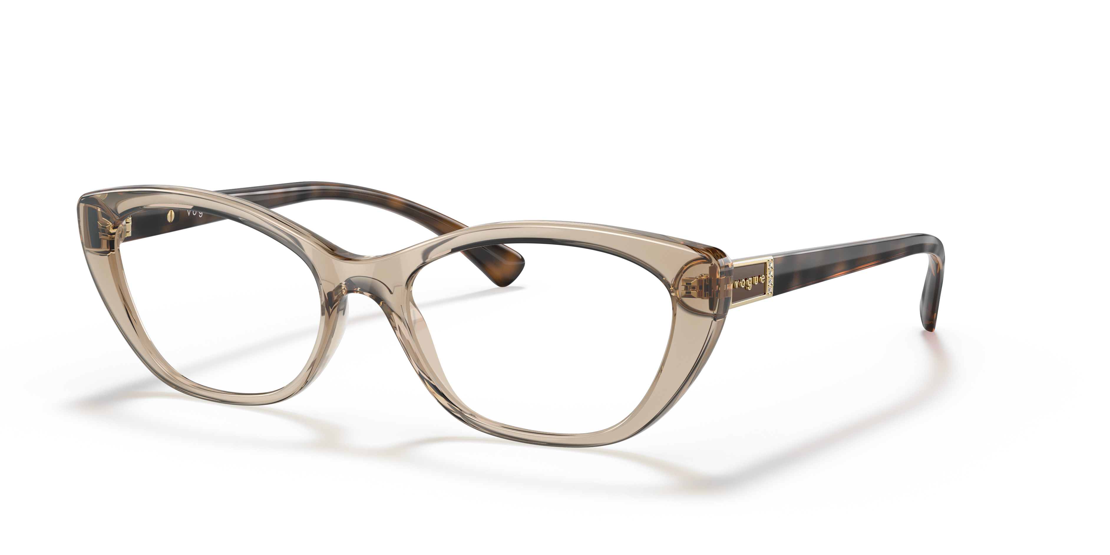 Elevate your style quotient with Vogue Eyewear VO5425B eyeglasses. The polished, transparent light brown frame features oval shape and is adorned with strass for a glamorous look. These frames are designed to complement any outfit and are perfect for everyday wear. Embrace sophistication and elegance with these eyeglasses that offer both fashion and functionality.