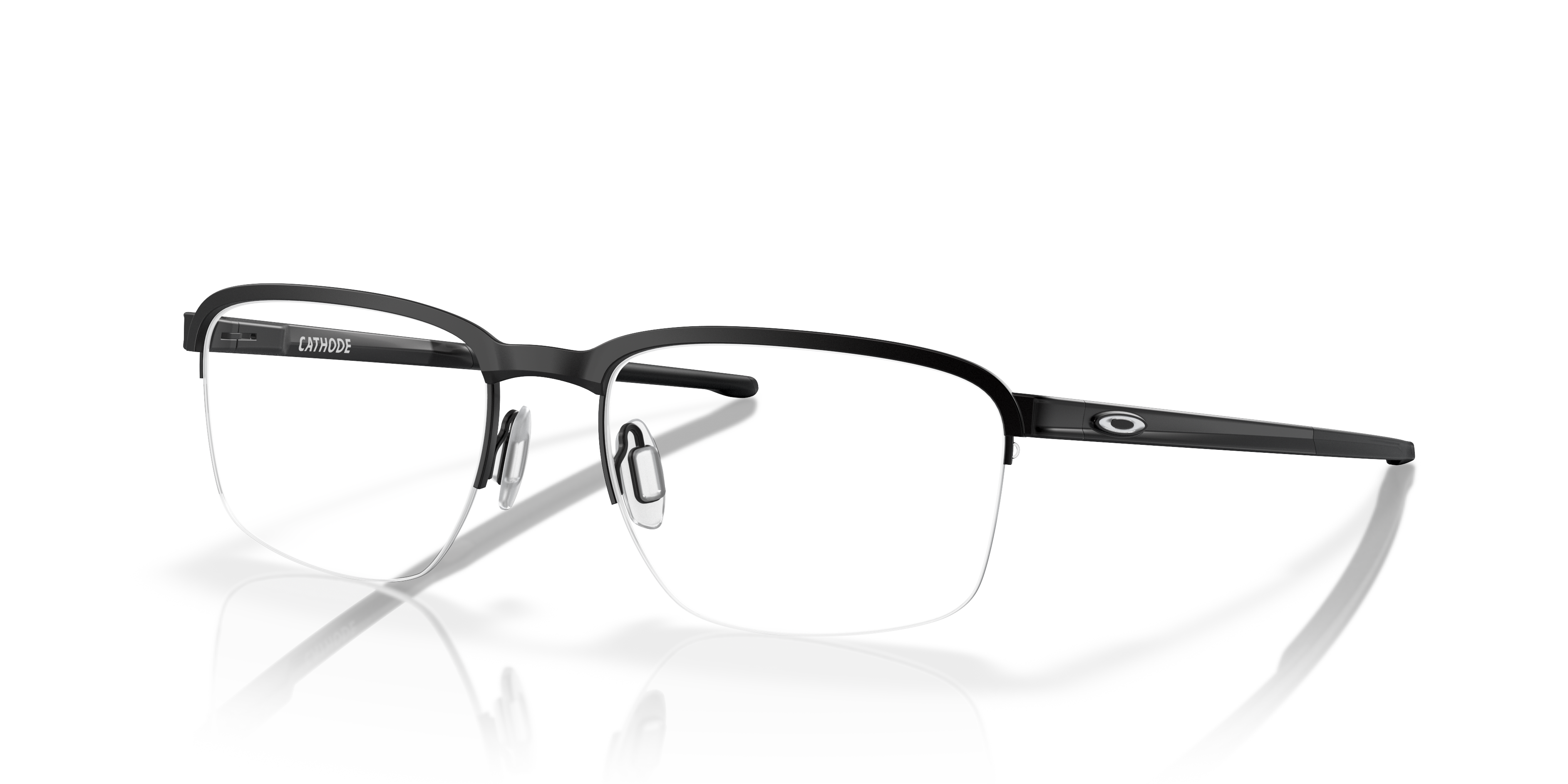 Oakley Cathode eyeglasses seamlessly integrate style and performance. The square shape, crafted from C 5 material, is both lightweight and durable. The matte black finish adds a touch of sophistication, while the satin black color provides a sleek contrast. These frames are designed to be as versatile as they are stylish. Experience the unique synergy of fashion and technology with these Oakley Cathode glasses. Available with prescription lenses.