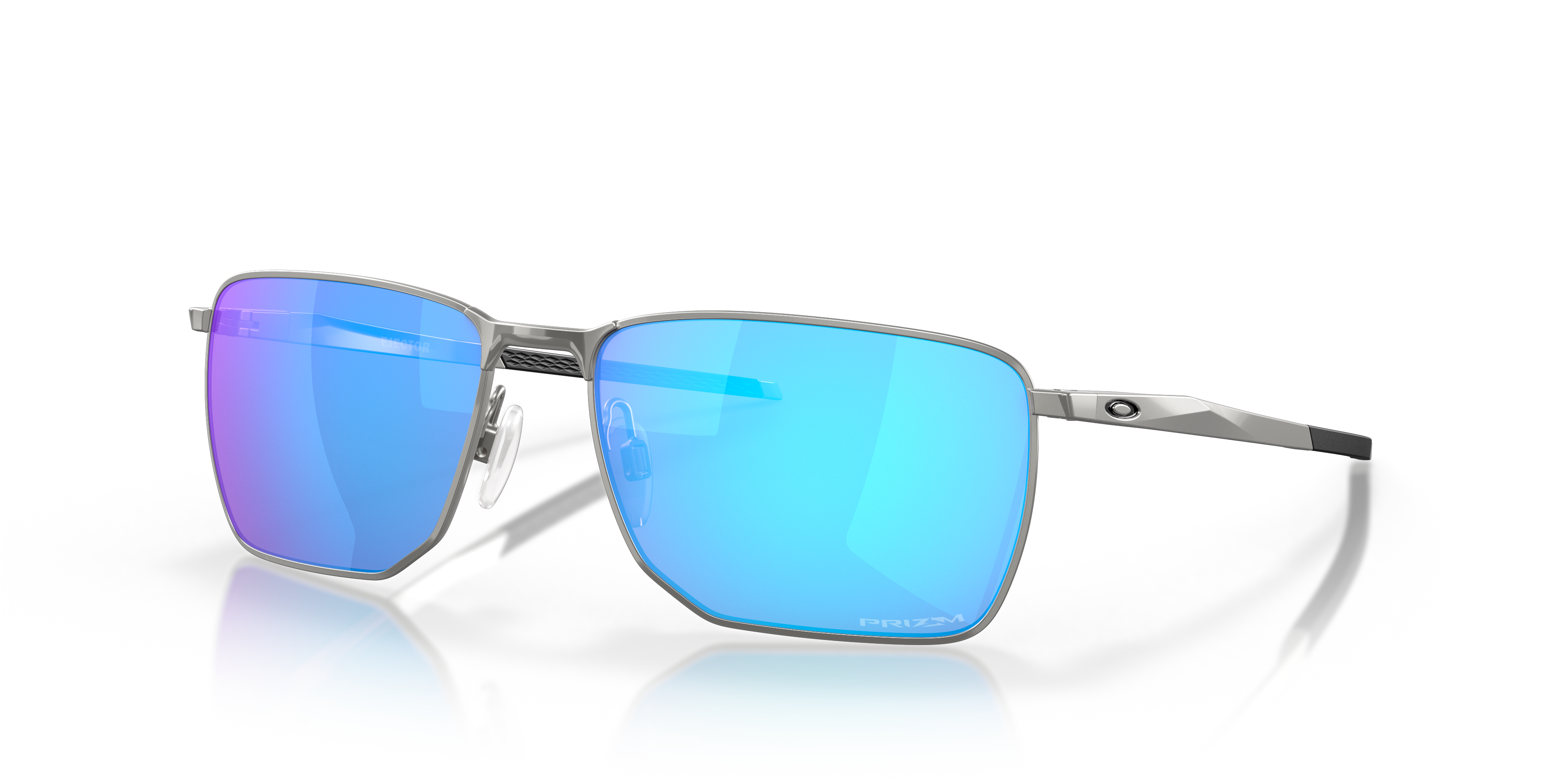 Oakley Ejector sunglasses are a perfect blend of style and performance. The matte satin chrome frame, paired with prizm sapphire lenses, offers optimal clarity and color contrast for an enhanced visual experience. The rectangle shape adds a modern touch to your look, while the C 5 frame material ensures durability. These shades are not only stylish but also practical for everyday wear. Available with prescription lenses.