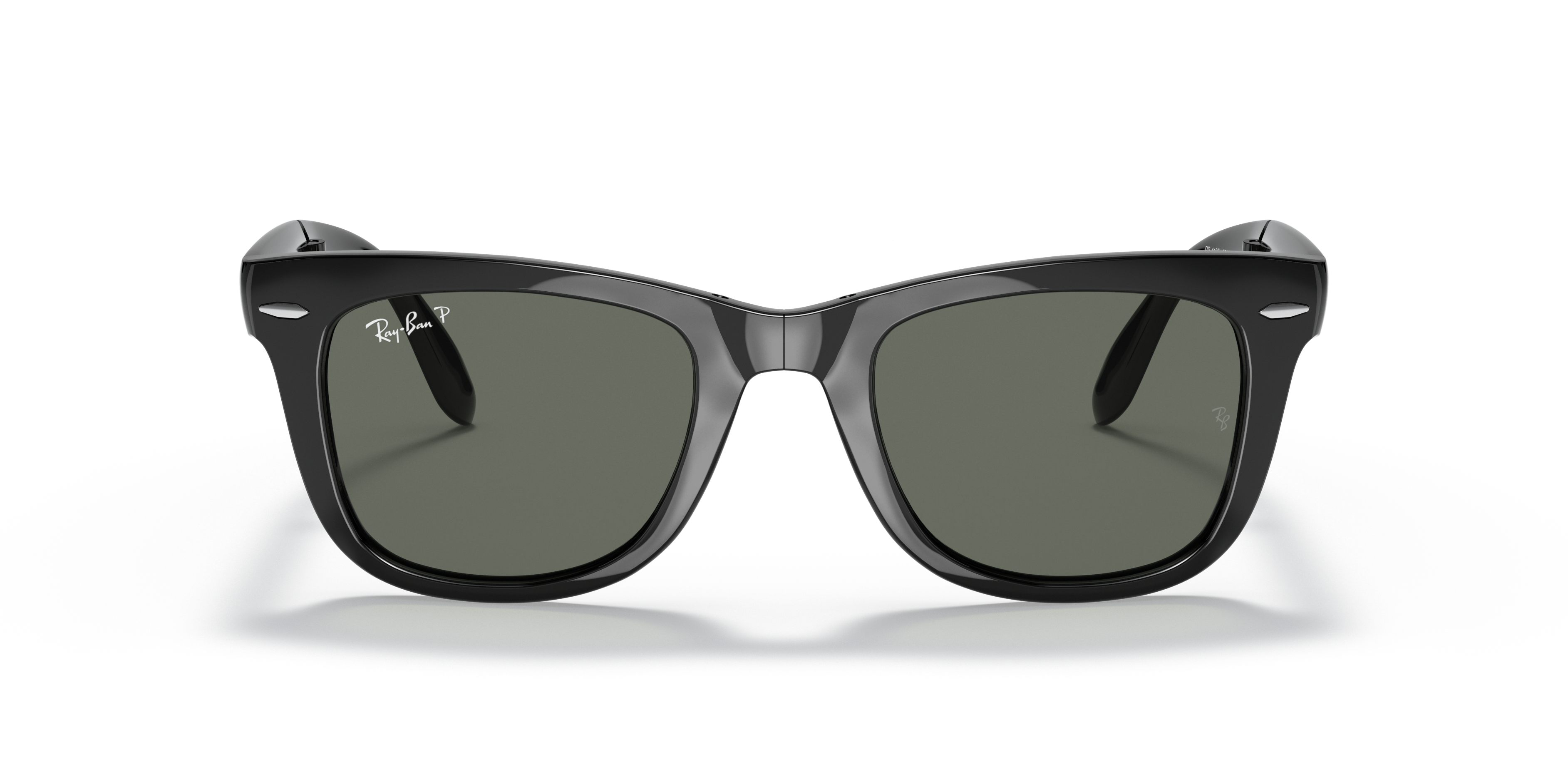 Experience the epitome of classic style and modern convenience with Ray-Ban Wayfarer Folding Classic sunglasses. These square-shaped glasses feature a polished black frame that is foldable, making them easy to carry around. The polarized green classic G-15 lenses not only provide superior glare reduction but also ensure optimal vision clarity. Available with prescription lenses.