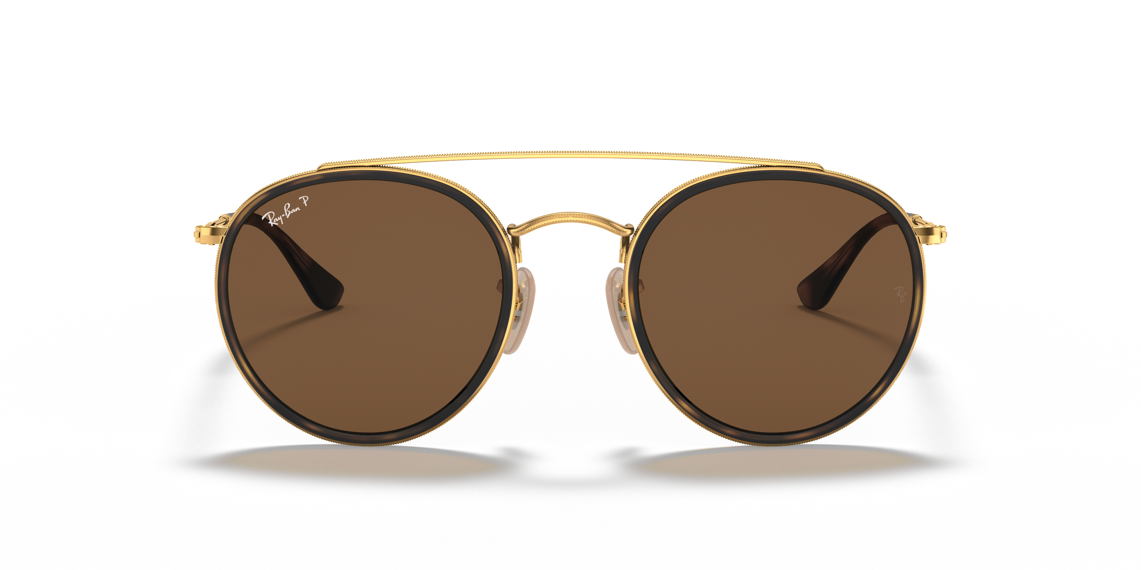 Elevate your style quotient with Ray-Ban Round Double Bridge sunglasses. These round-shaped glasses feature a polished gold metal frame that exudes elegance and sophistication, and the classic B-15 polarized lenses in brown color not only enhance your vision but also ensure superior glare protection. Featuring a black frame color, these shades are a versatile choice for any fashion-forward individual. Choose Ray-Ban Round Double Bridge to make a bold yet timeless statement. Available with prescription lenses.