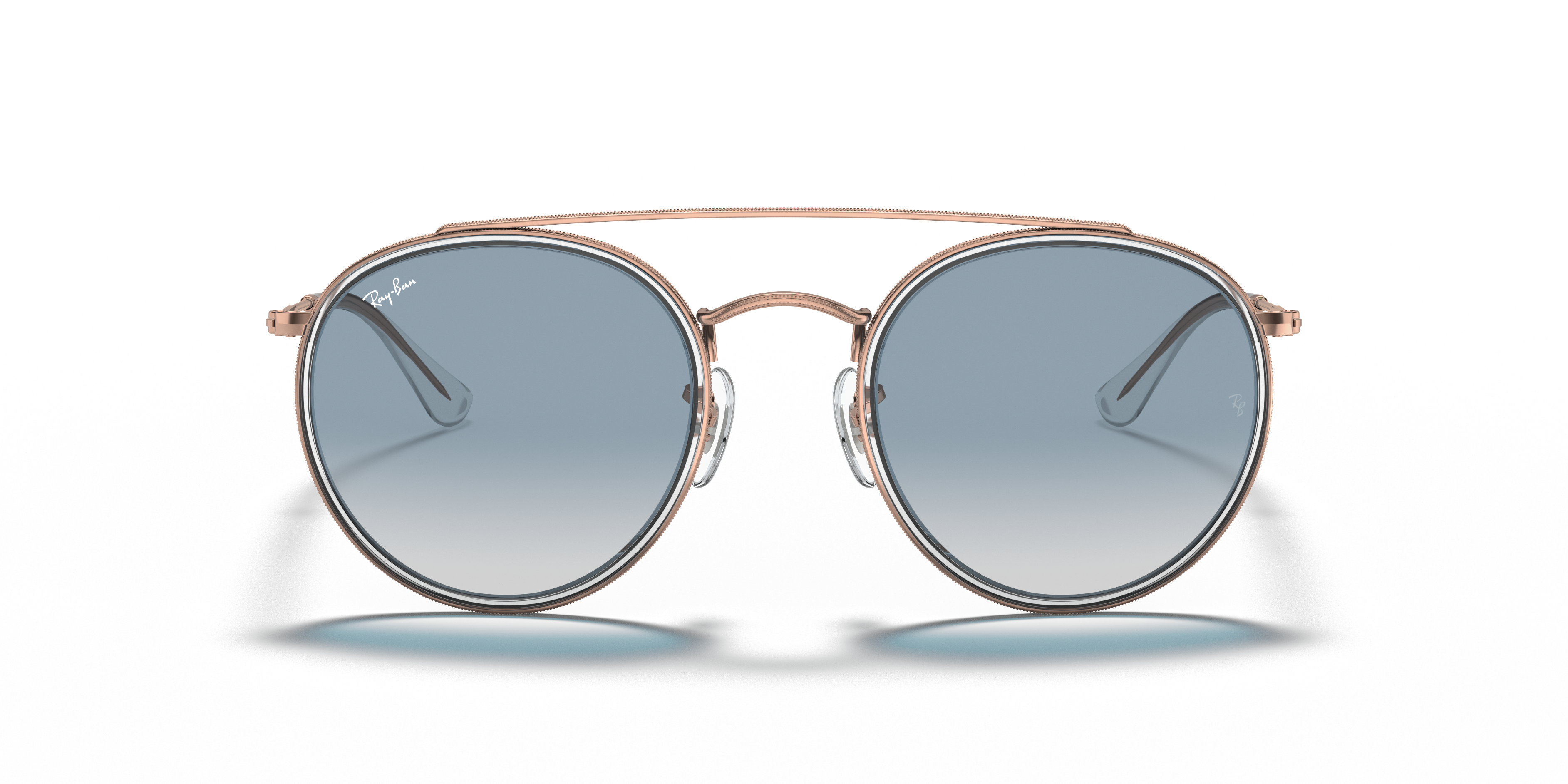 Embrace the vintage charm of Ray-Ban Round Double Bridge glasses. These round-shaped frames are crafted from durable metal, ensuring longevity and comfort. The polished copper frame color adds a touch of elegance, while the light blue gradient lenses provide a stylish and modern twist. The double bridge design adds a unique touch to these timeless shades. Available with prescription lenses.