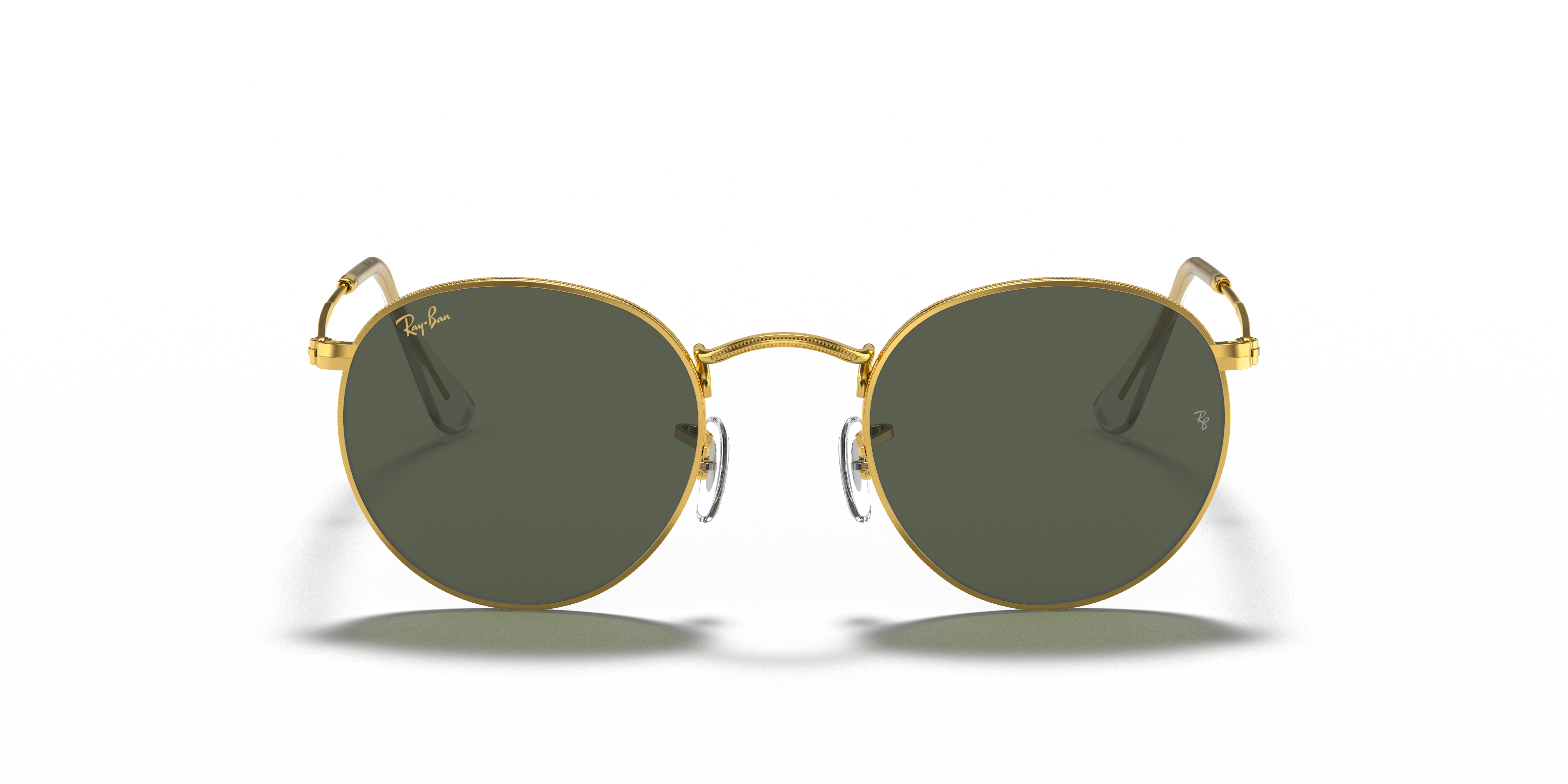 Elevate your style quotient with Ray-Ban Round Metal Legend Gold sunglasses. These round-shaped glasses feature a polished gold metal frame that exudes a classic and timeless appeal. The green classic G-15 lenses offer superb optical clarity, while the black lens treatment adds a touch of sophistication to these iconic frames. These shades are not only stylish but also versatile. Available with prescription lenses.