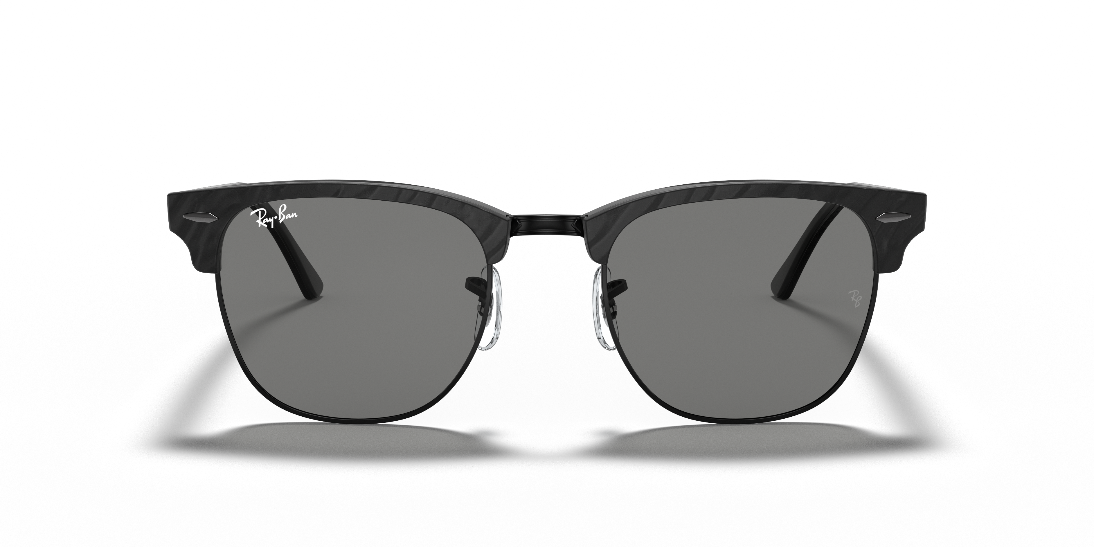 Elevate your style quotient with Ray-Ban Clubmaster Marble sunglasses. The square-shaped acetate frame in a polished black finish is enhanced by marble detailing, adding a touch of sophistication to any outfit. The dark grey lenses provide optimal protection from the sun while maintaining a sleek look. These shades are a versatile choice for everyday wear.