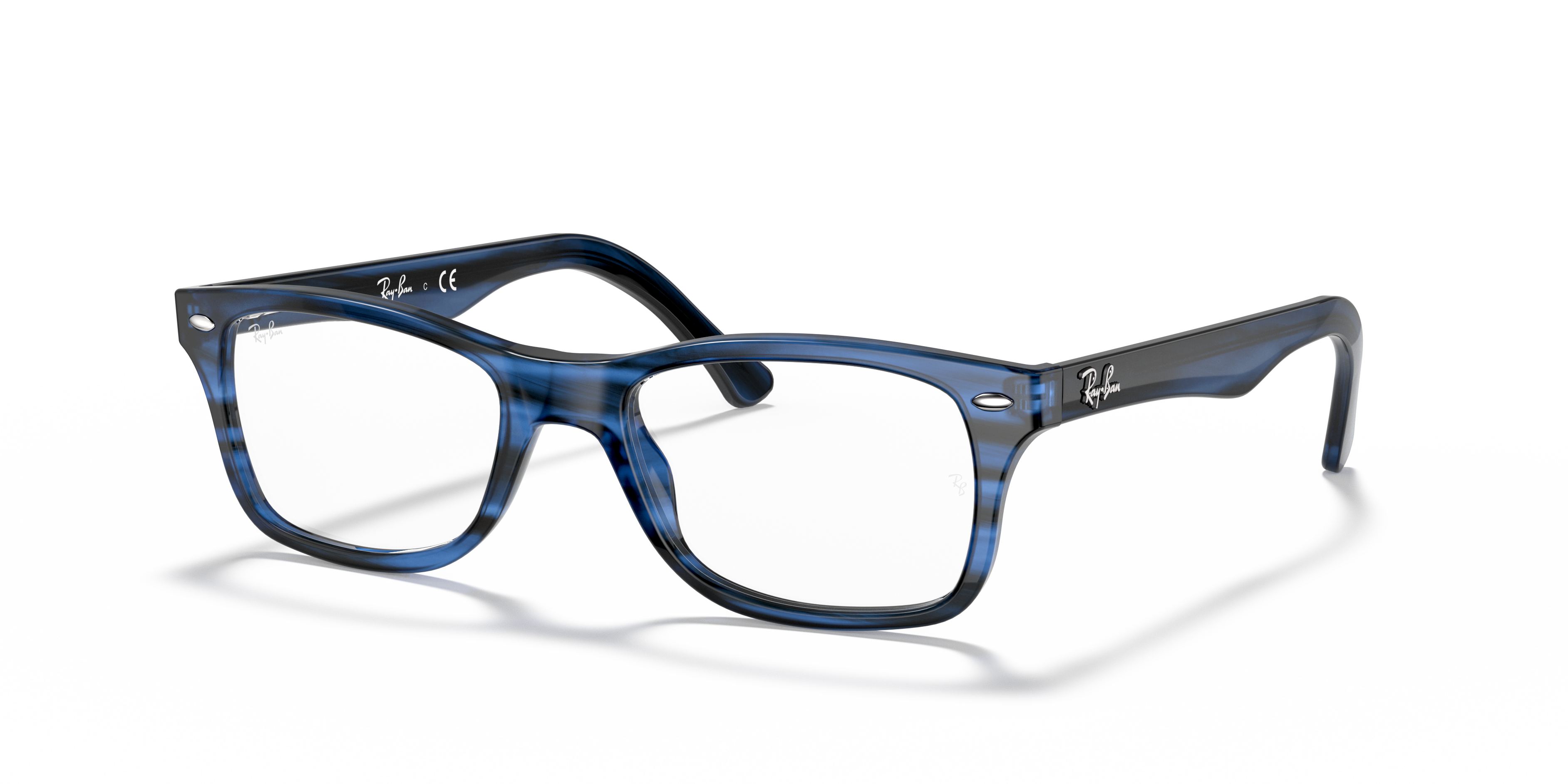 Elevate your style quotient with a pair of Ray-Ban RB5228 Optics. Crafted from durable acetate, these square-shaped glasses feature a polished striped blue finish that adds a touch of sophistication to any look. The frame's black and blue color scheme offers a unique contrast, making these shades stand out. Available with prescription lenses.