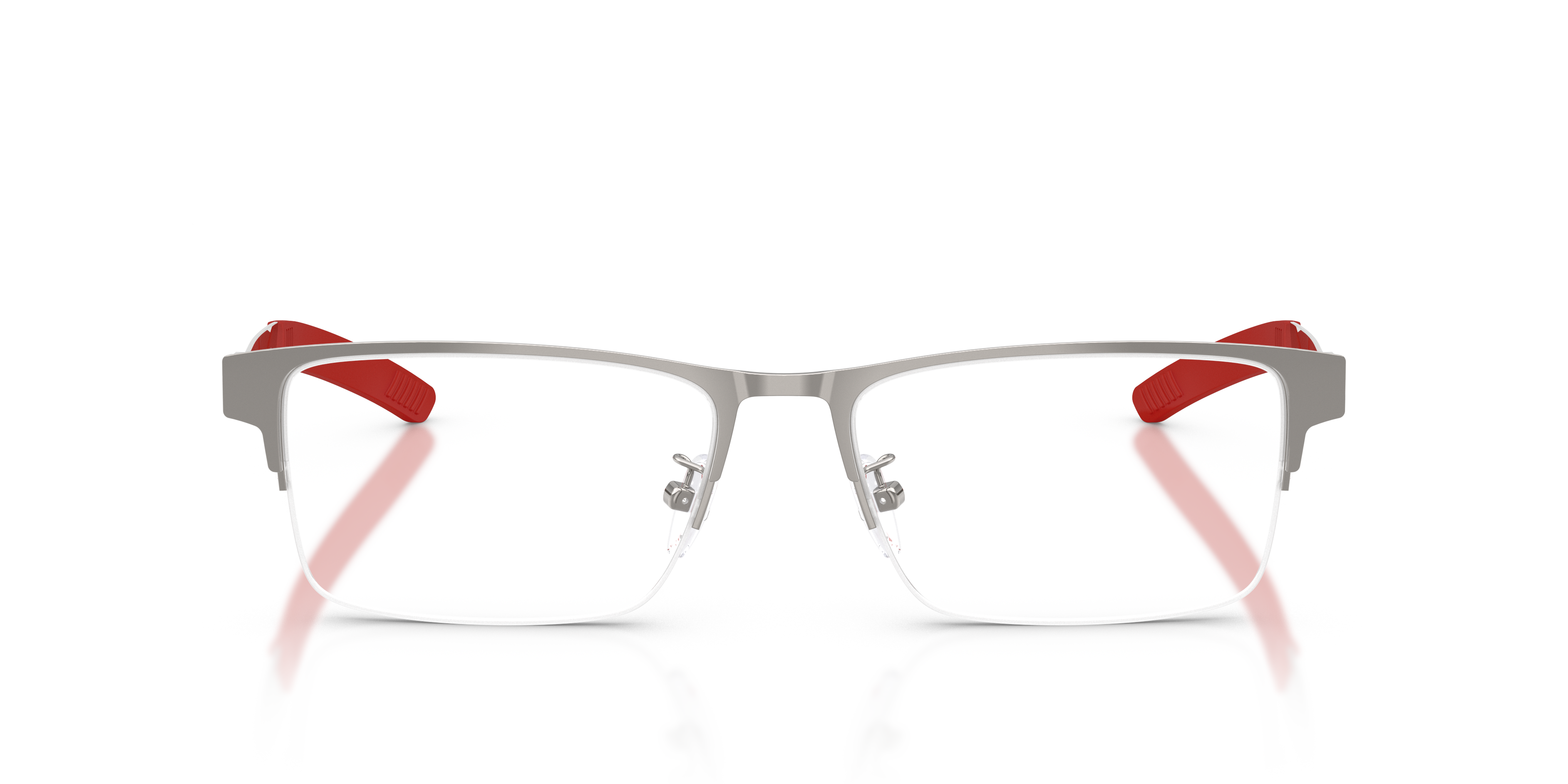 Elevate your eyewear game with the Scuderia Ferrari FZ7017D optical design. The semi-rim rectangular frames create a sleek, structured look and are crafted from lightweight metal for lasting comfort. Featuring a custom screwless hinge and rubber accents in iconic Scuderia Ferrari colors, this refined style is tailored with glasses with a low bridge fit inspired by Asian design. Finished with a grey frame front and demo lenses, these grey eyeglasses are the perfect blend of innovation and sophistication.