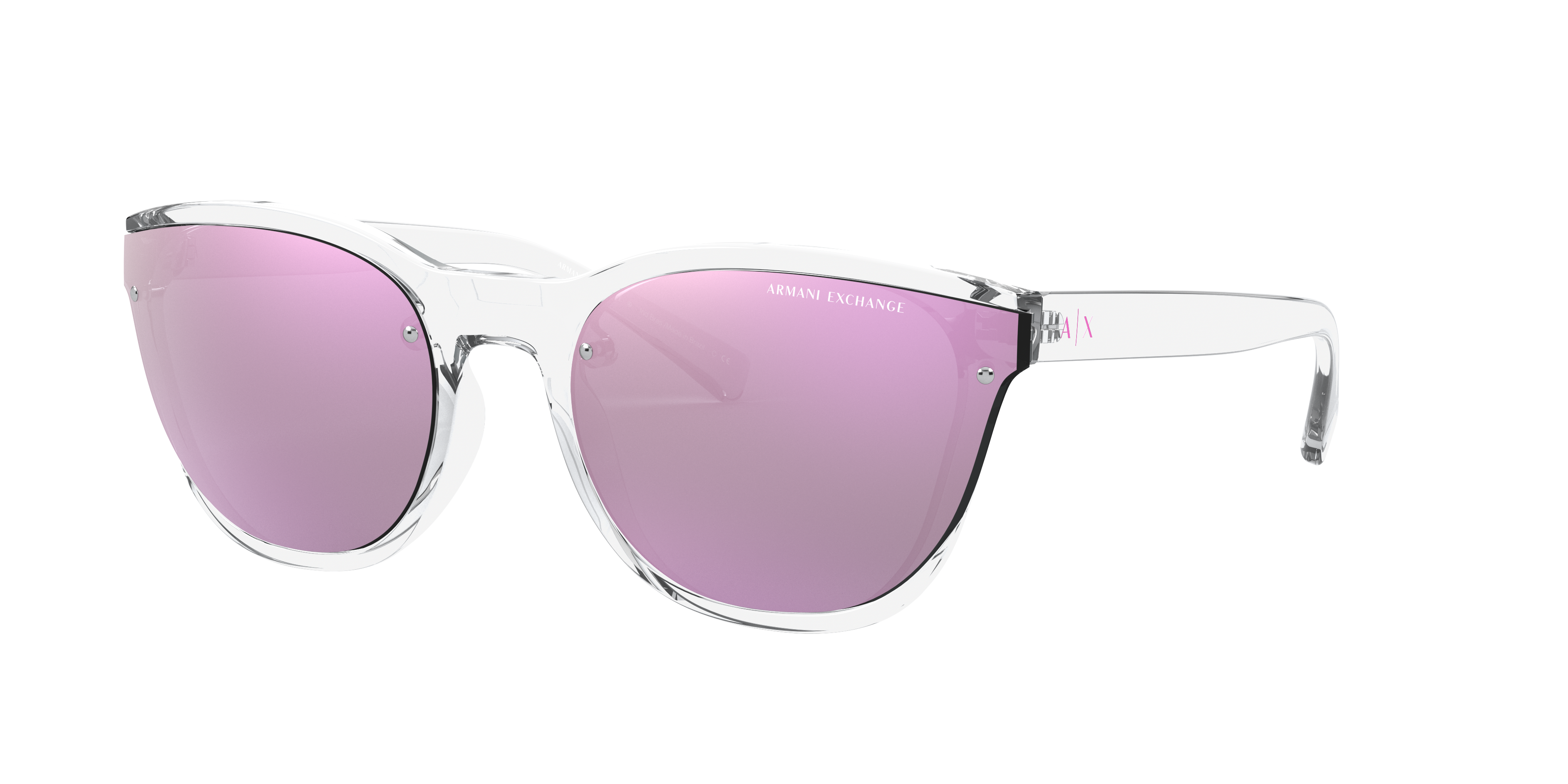 Elevate your style with Armani Exchange AX4097S sunglasses. These square-shaped glasses feature a shiny crystal frame that contrasts beautifully with the mirror pink lenses, creating a striking look. The solid color lens treatment in mirror pink adds a touch of glamour to any outfit while providing excellent protection. Embrace your individuality and express your unique style with these stunning shades.