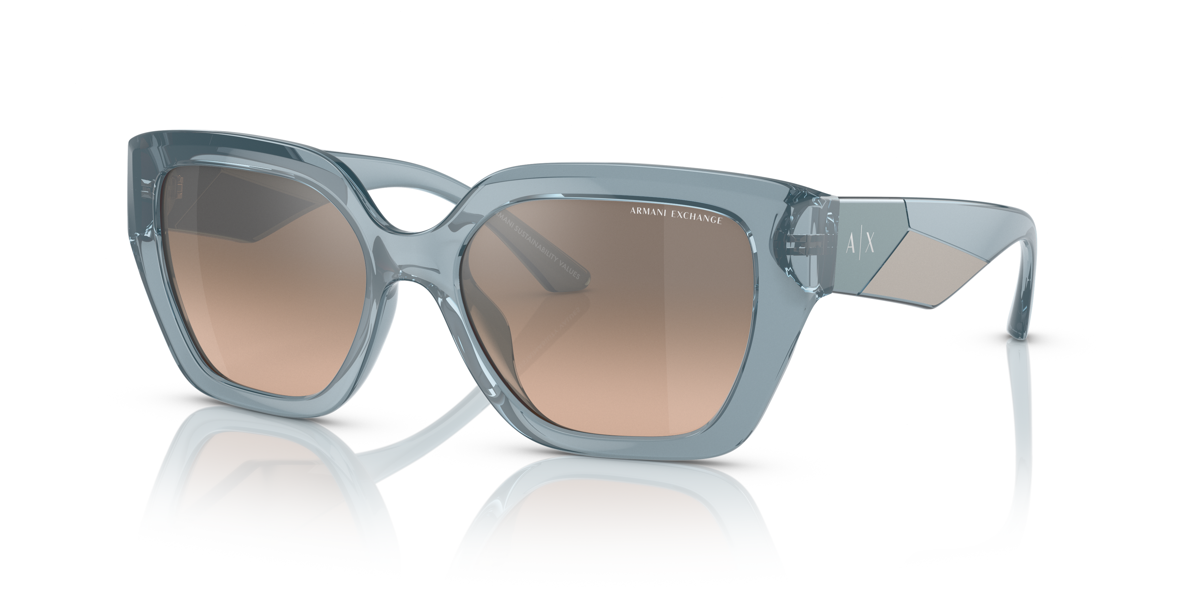 Embrace the perfect balance of style and performance with Armani Exchange AX4125SU sunglasses. The polished shiny transparent azure frame, paired with a gradient mirror lens treatment in brown silver, creates a striking contrast that is sure to turn heads. The rectangle shape adds a modern touch to these timeless shades - making them as eye-catching as they are practical. Available with prescription lenses.