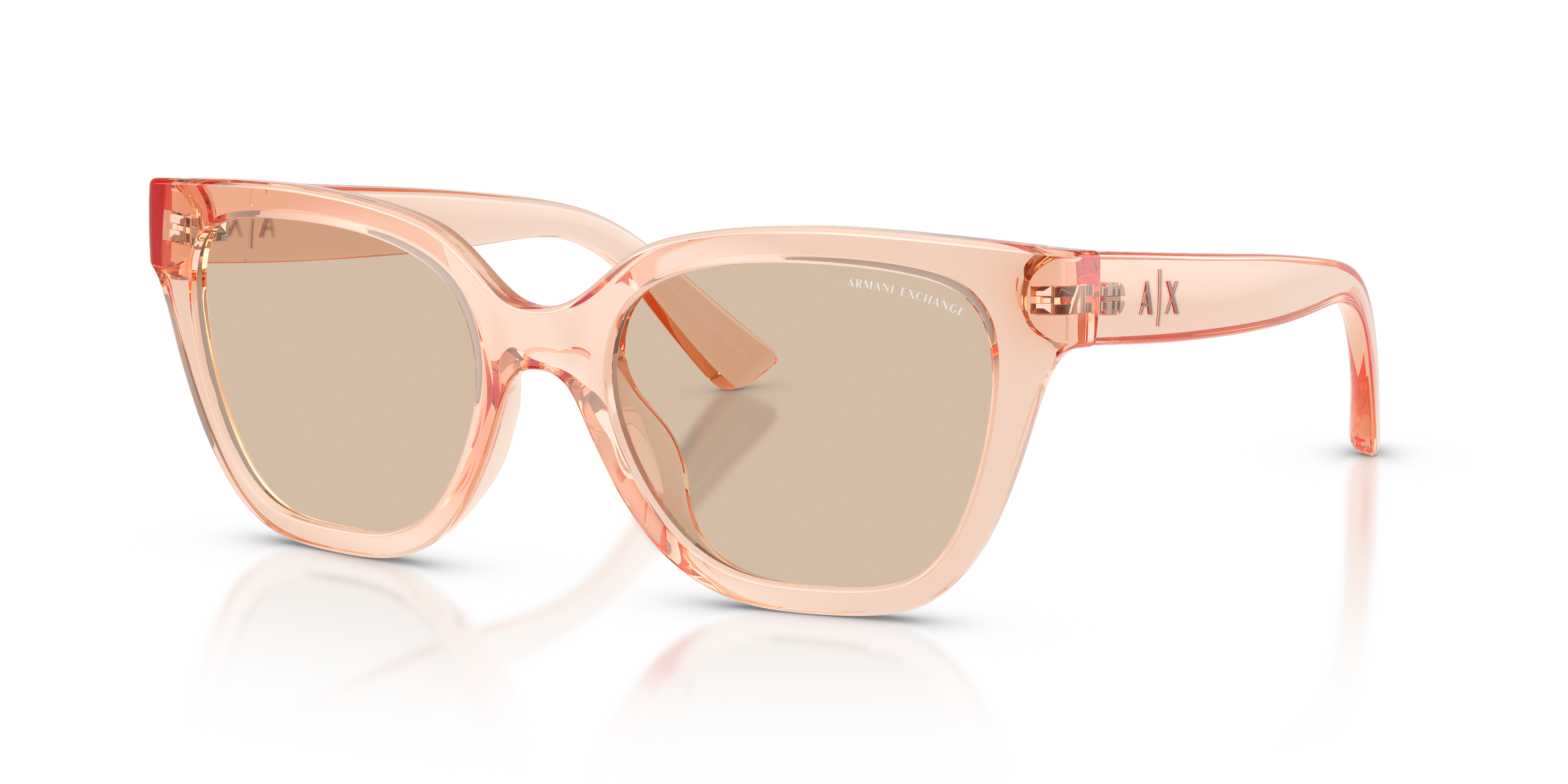 Experience the perfect blend of style and performance with Armani Exchange AX4164SU sunglasses. The cat eye shape adds a touch of glamour, while the polished transparent peach frame color provides a modern twist. The solid light brown lenses offer excellent protection for your eyes, making these shades a versatile choice for any occasion.