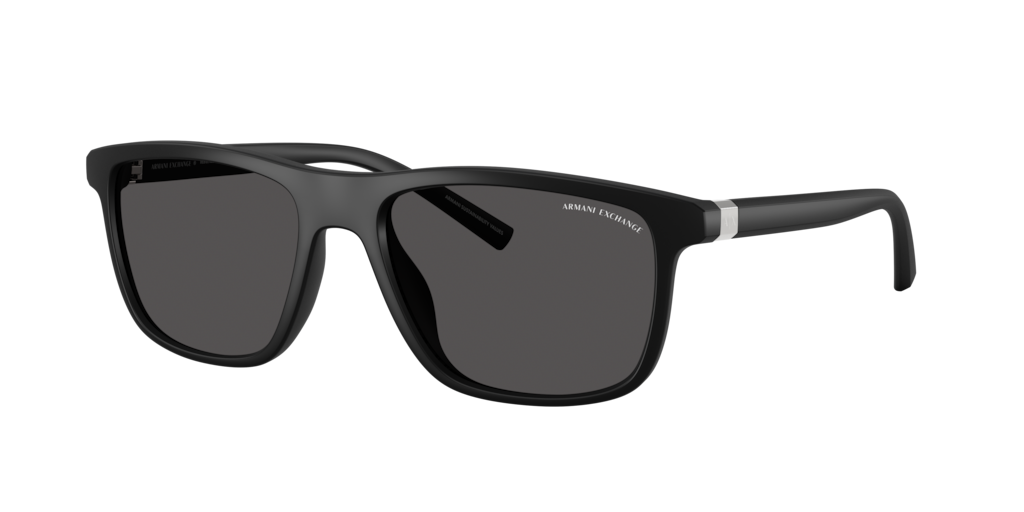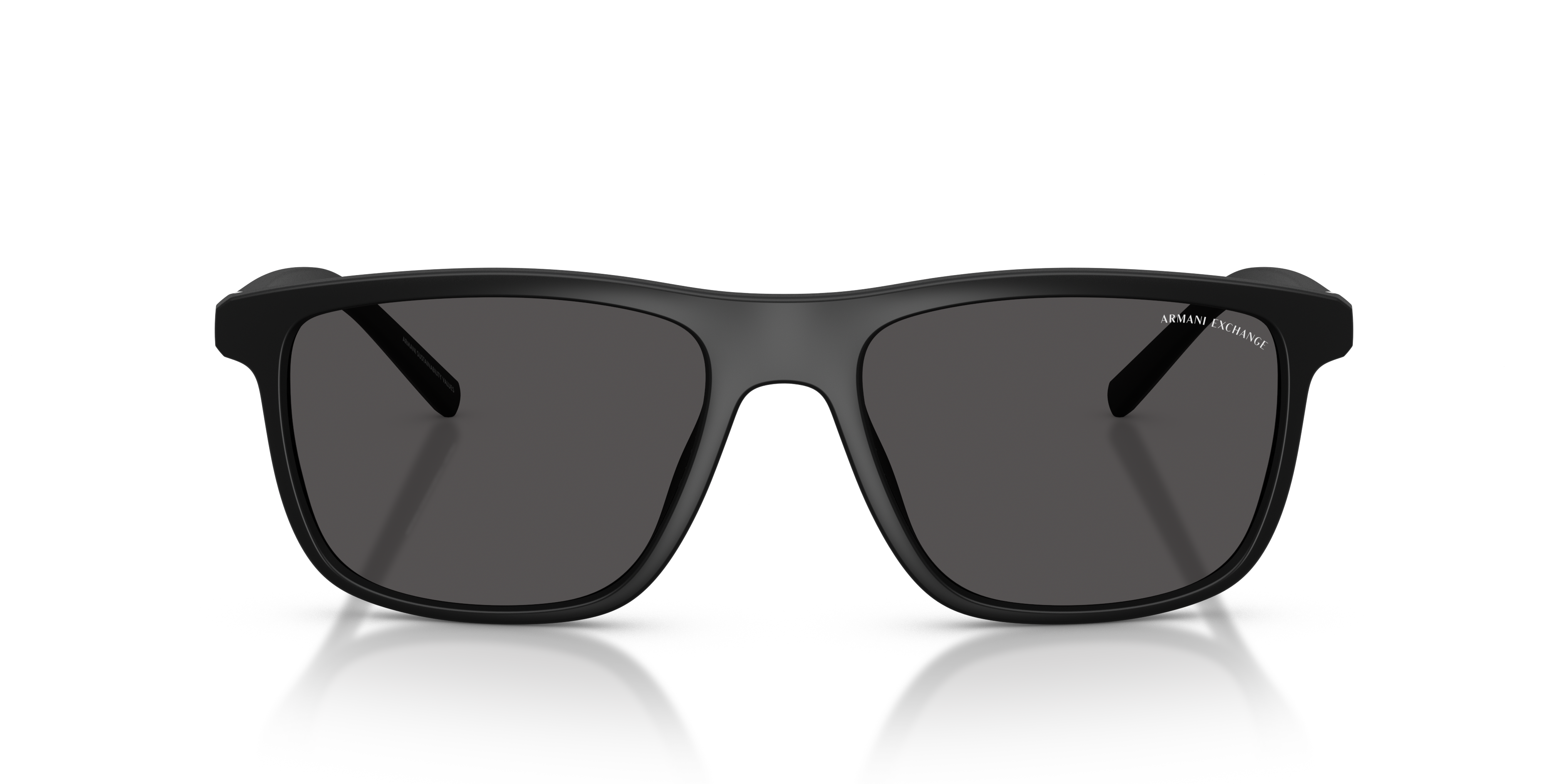 The Armani Exchange AX4167SU sunglasses exude effortless cool with their contemporary pillow-shaped frames crafted from durable nylon and propionate. These matte black sunglasses add sleek sophistication, complemented by the grey solid-color lenses. Injected temples and a universal fit ensure comfort, while a bold metal plaque featuring the iconic A|X logo adds a modern edge. Perfect sunglasses for men who appreciate style and functionality.