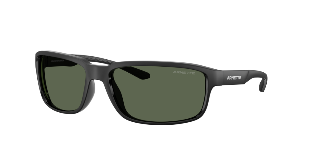 The Arnette AN4373 sunglasses combine urban energy with modern design. Crafted with full-rim frames in matte recycled black, these Arnette sunglasses showcase a sleek rectangular shape that exudes structure and style. Made from durable nylon and propionate, the dynamic temples feature a striking zig-zag pattern for added flair. Solid green lenses enhance the contemporary look, while the injected temples ensure long-lasting comfort.